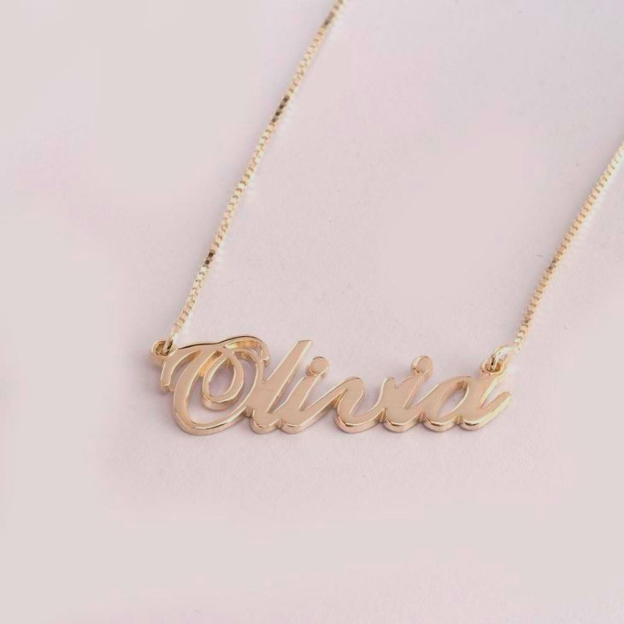 14K Gold Name Necklace – Solid Gold Personalized Jewelry in Cursive Font, Available in Delicate, Classic & Statement Sizes