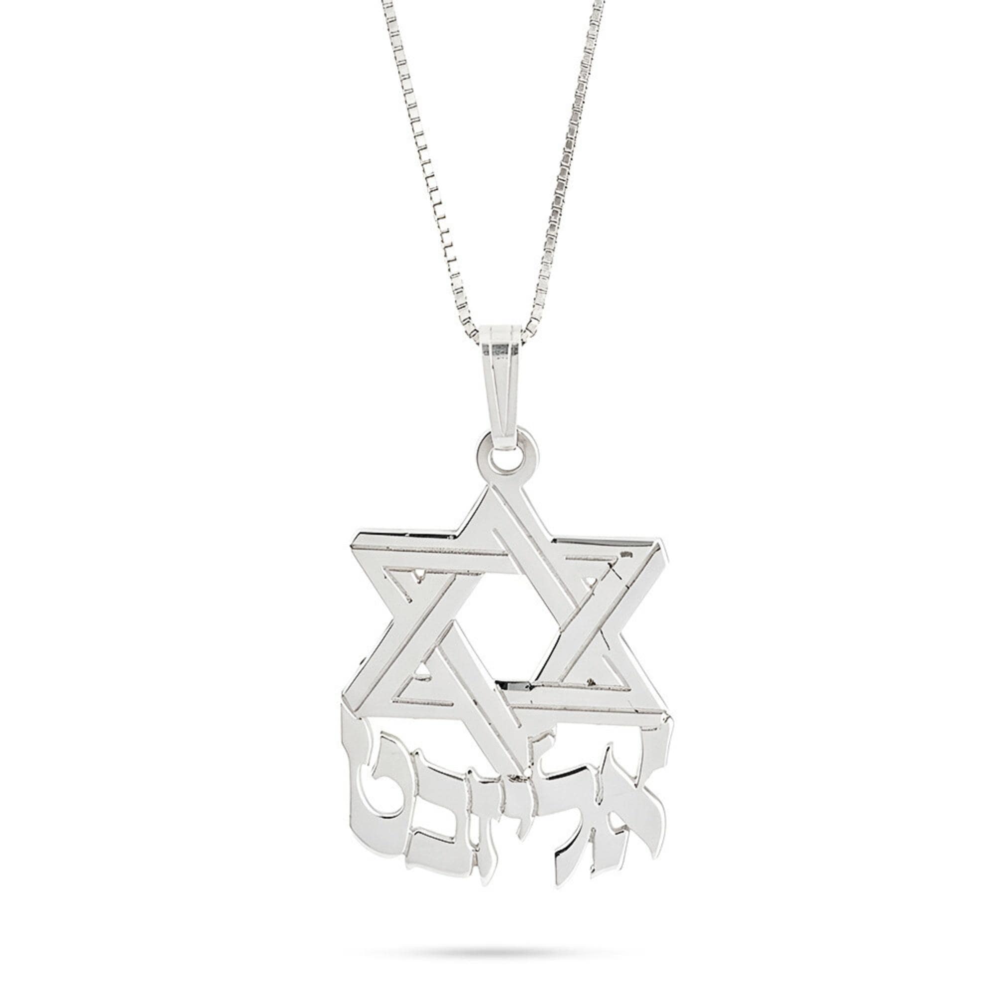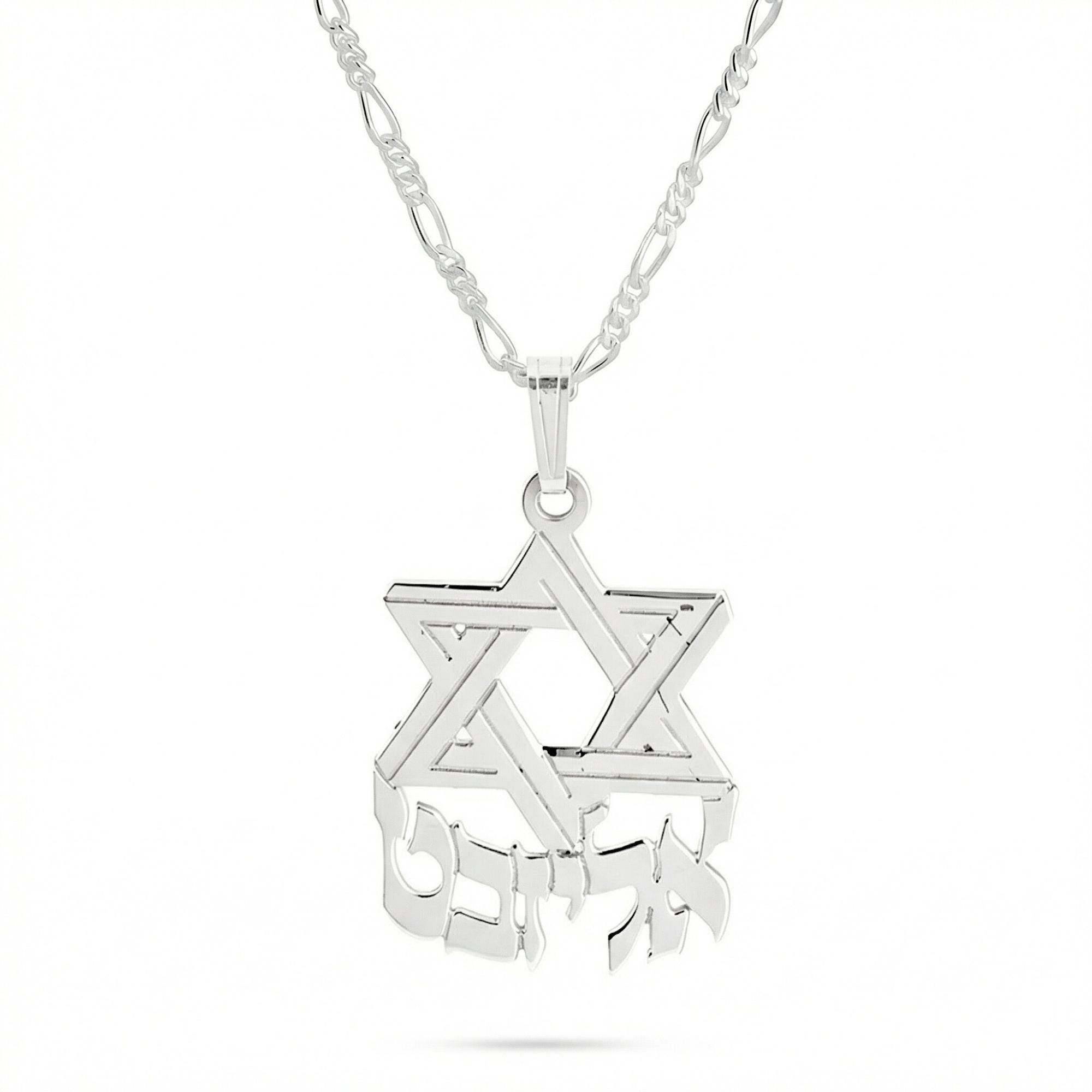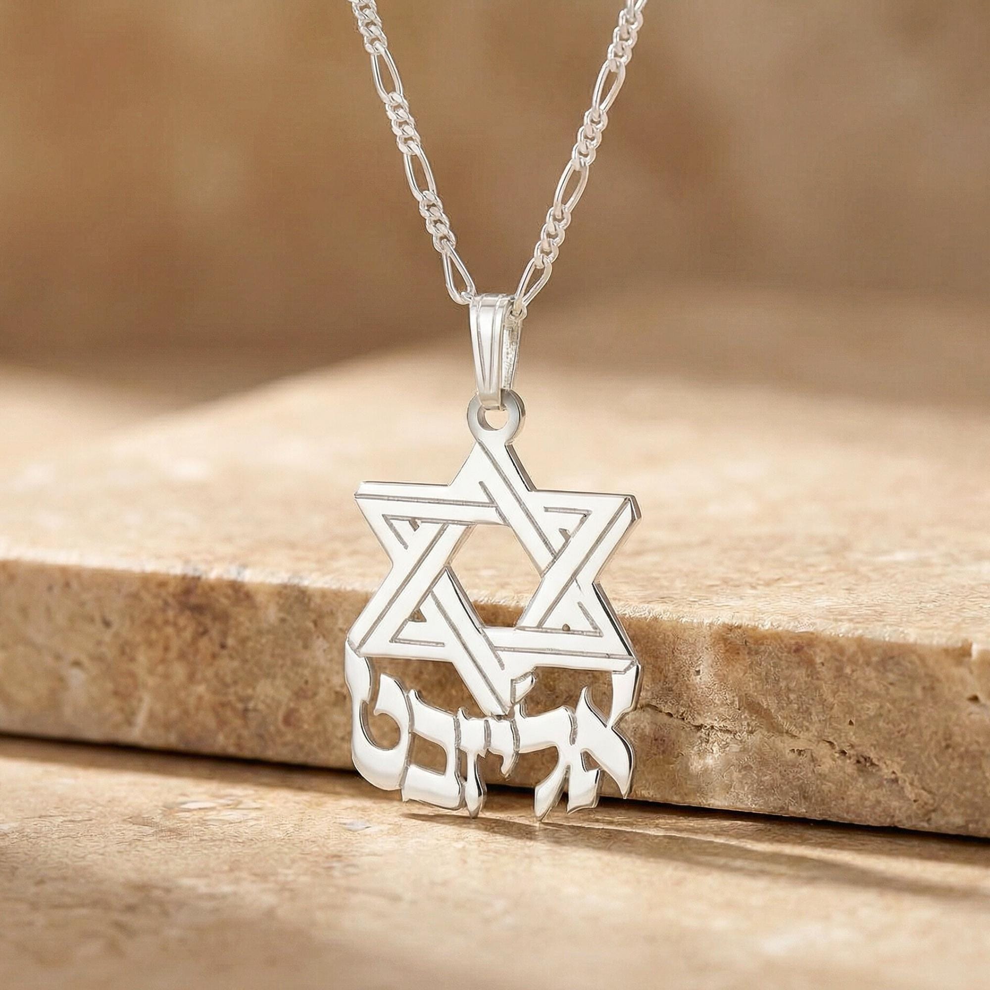 ✡️ This stunning Star of David Necklace features a custom Hebrew name beautifully engraved under a large Magen David pendant. Handcrafted from 925 sterling silver, this meaningful piece of Jewish jewelry makes the perfect Bar Mitzvah gift for your son or a treasured accessory for anyone who cherishes their Jewish heritage.