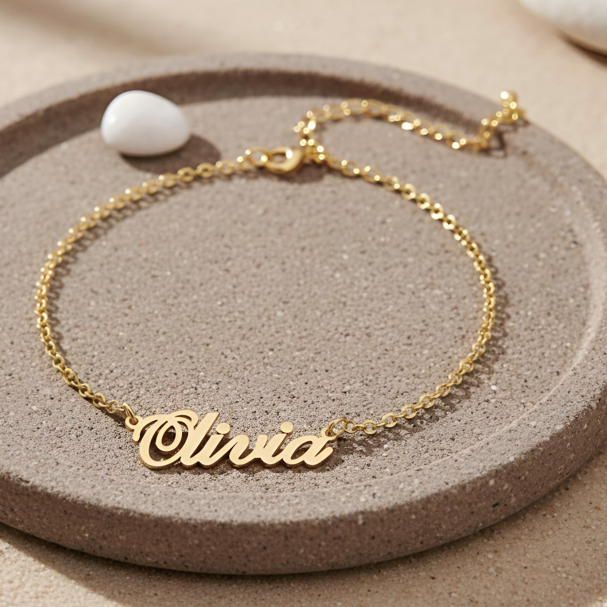 Each anklet is custom-cut with your chosen name and polished to a smooth finish for durability and shine.