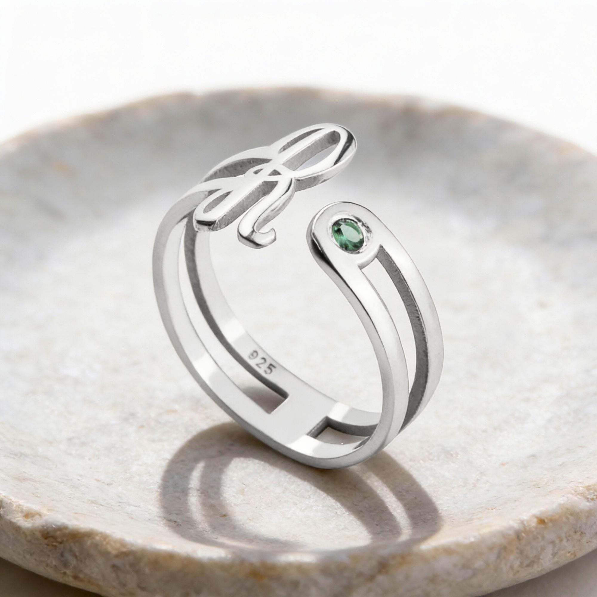 Look no further than a 925 Silver Birthstone Initial Ring.