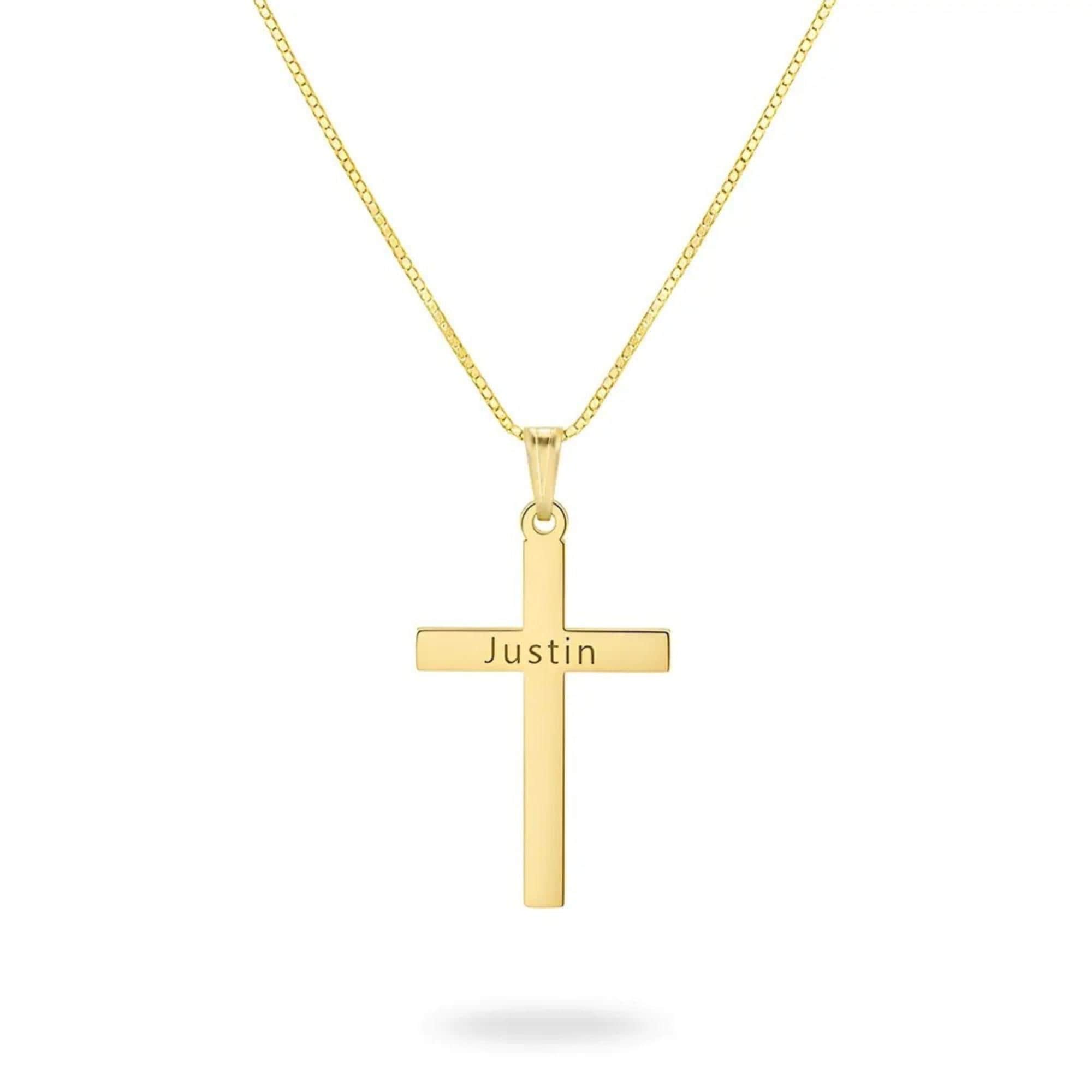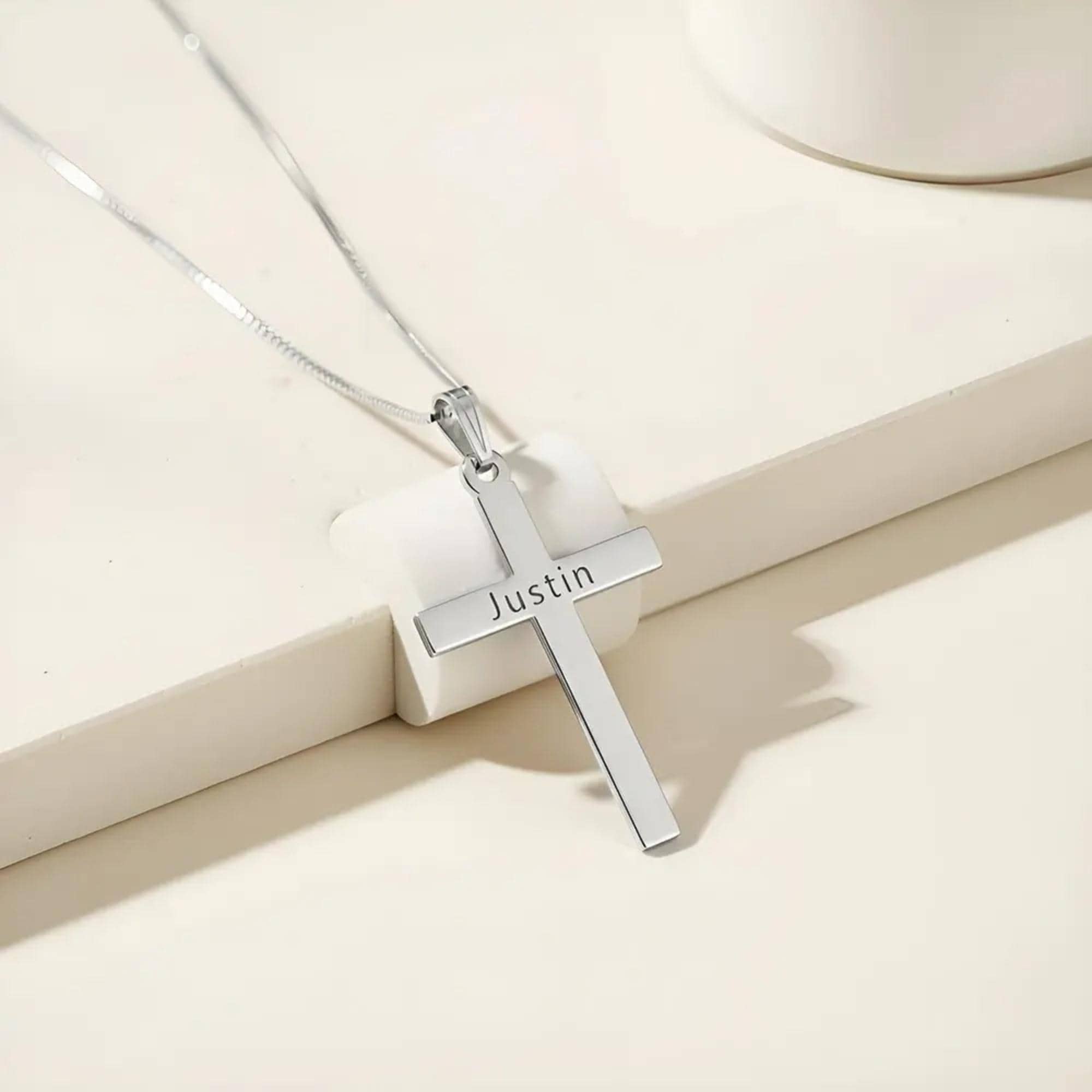 This personalized cross necklace blends simplicity and elegance, crafted for durability and comfort. Its engraved detail offers a unique touch, allowing you to add a name, date, or special message to create a one-of-a-kind piece.