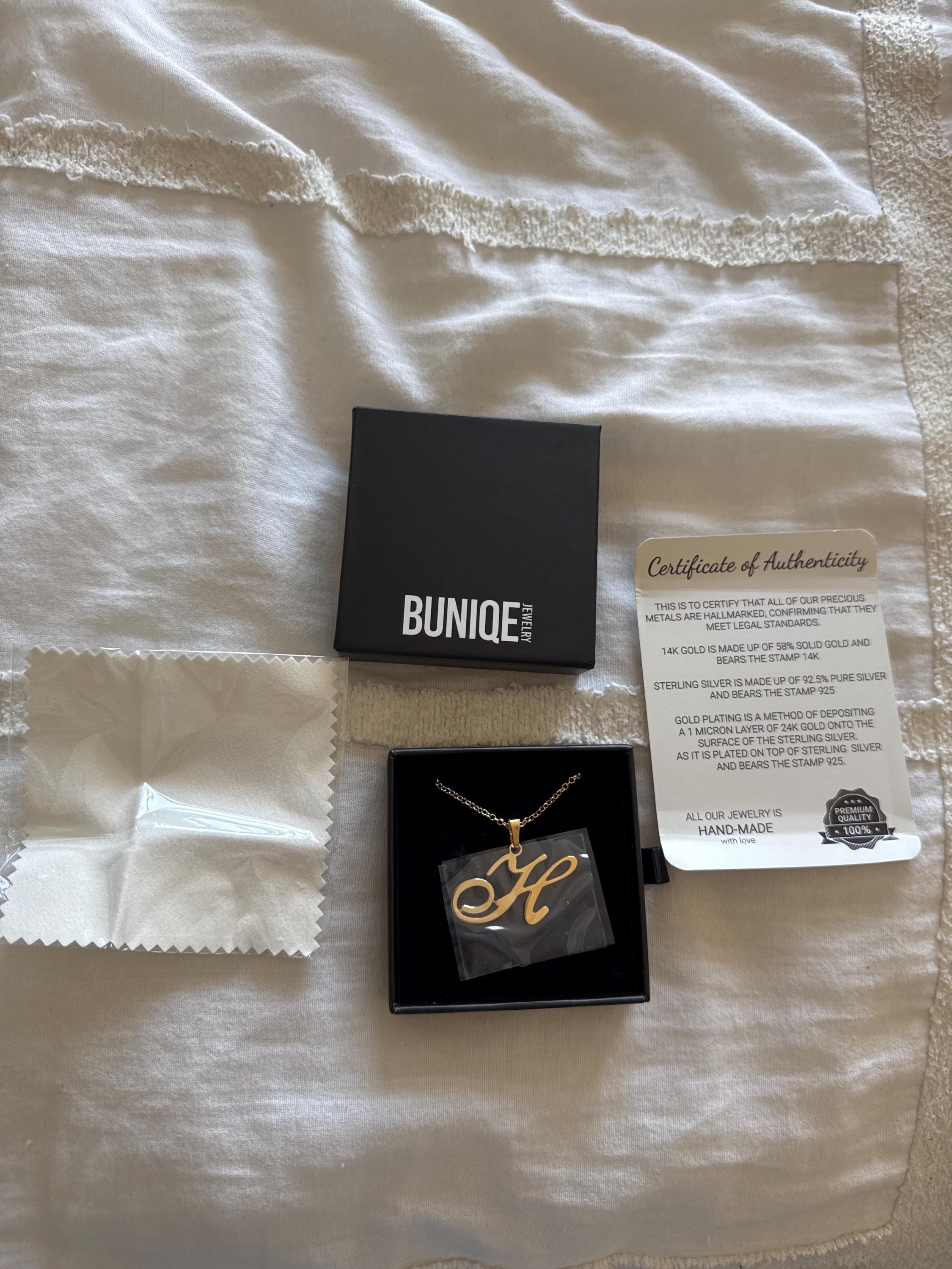 Crafted with care from 925 Sterling Silver, 24K Gold Plated, or Rose Gold, this exquisite piece features a beautiful big cursive letter pendant. Its eye-catching design is perfect for adding a personalized touch to your outfit or gifting someone special.