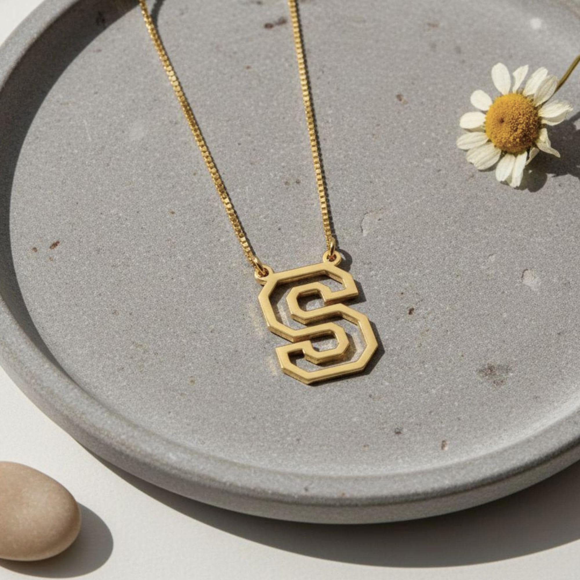 🔤 Elevate your style with this Varsity Initial Necklace, a modern yet timeless piece crafted with precision and care.