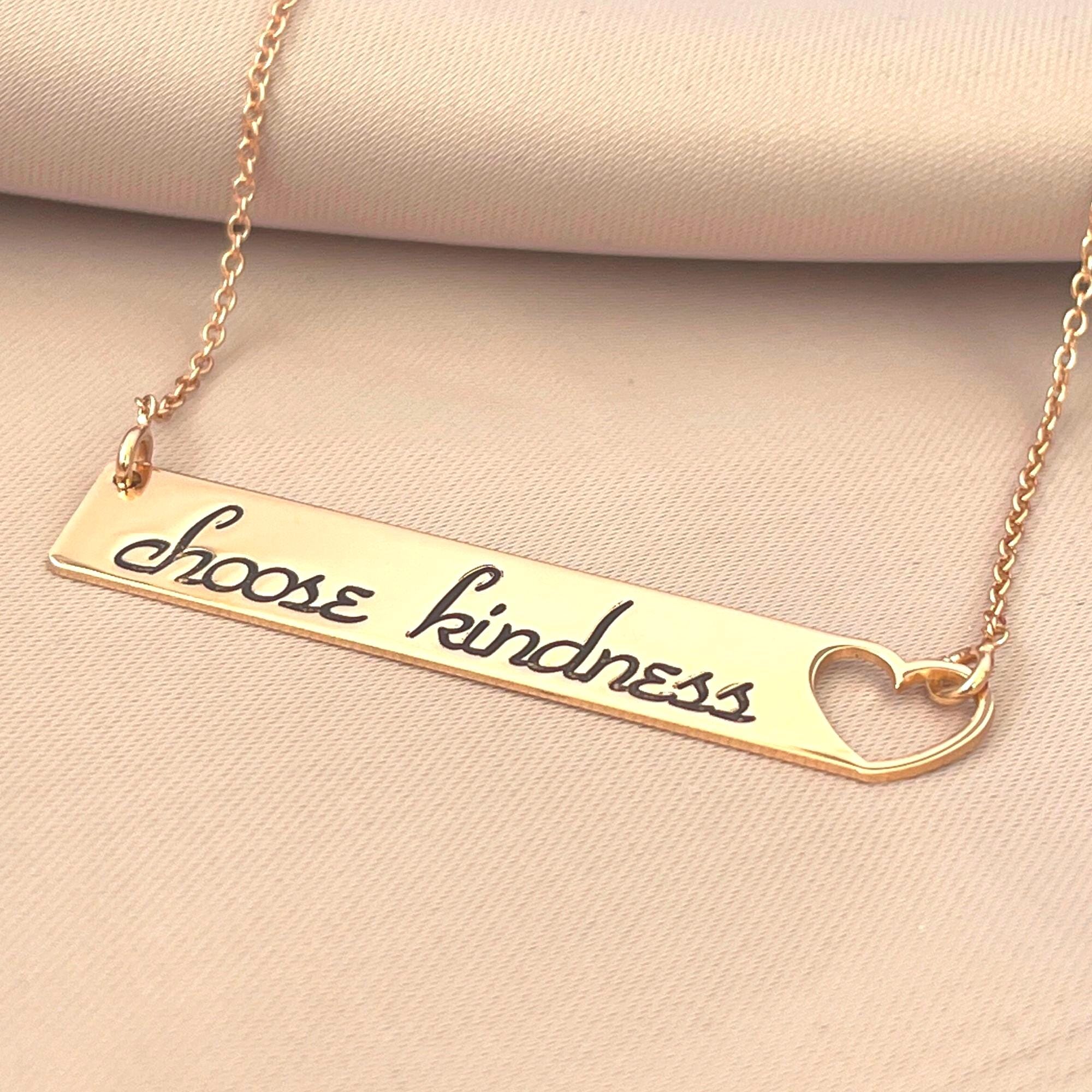 The bar pendant can be engraved with names or any verse you would like in cursive black cursive letters.