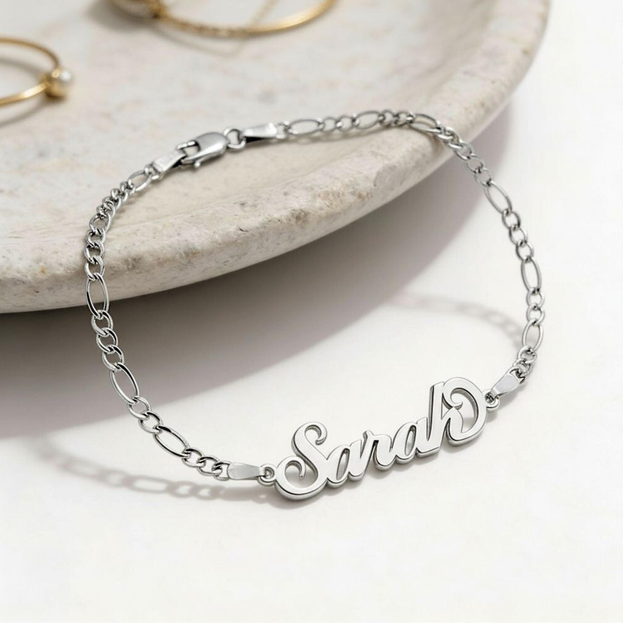 ✨ Personalized Sterling Silver Figaro Name Bracelet — a stunning handmade jewelry piece designed to celebrate the special woman in your life.