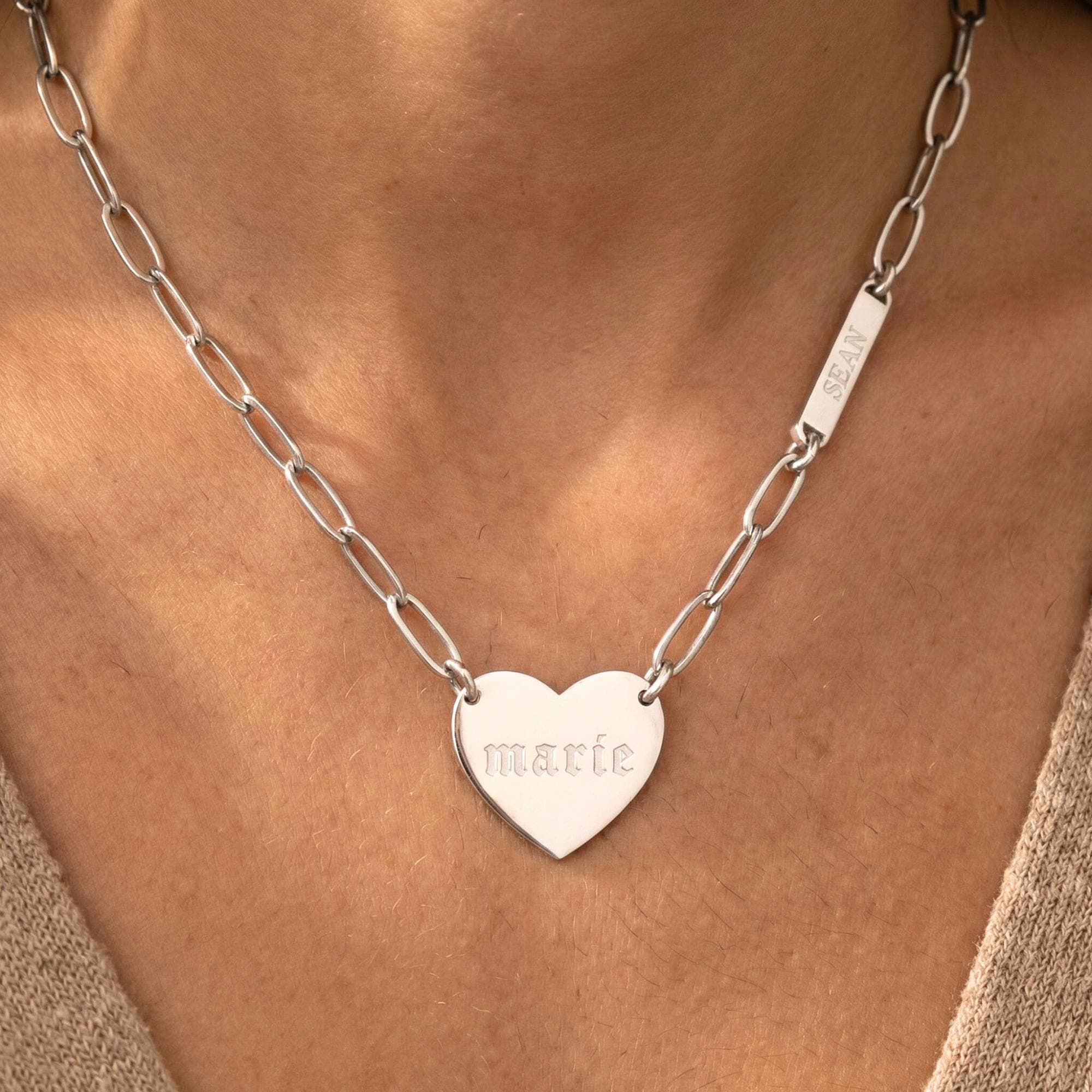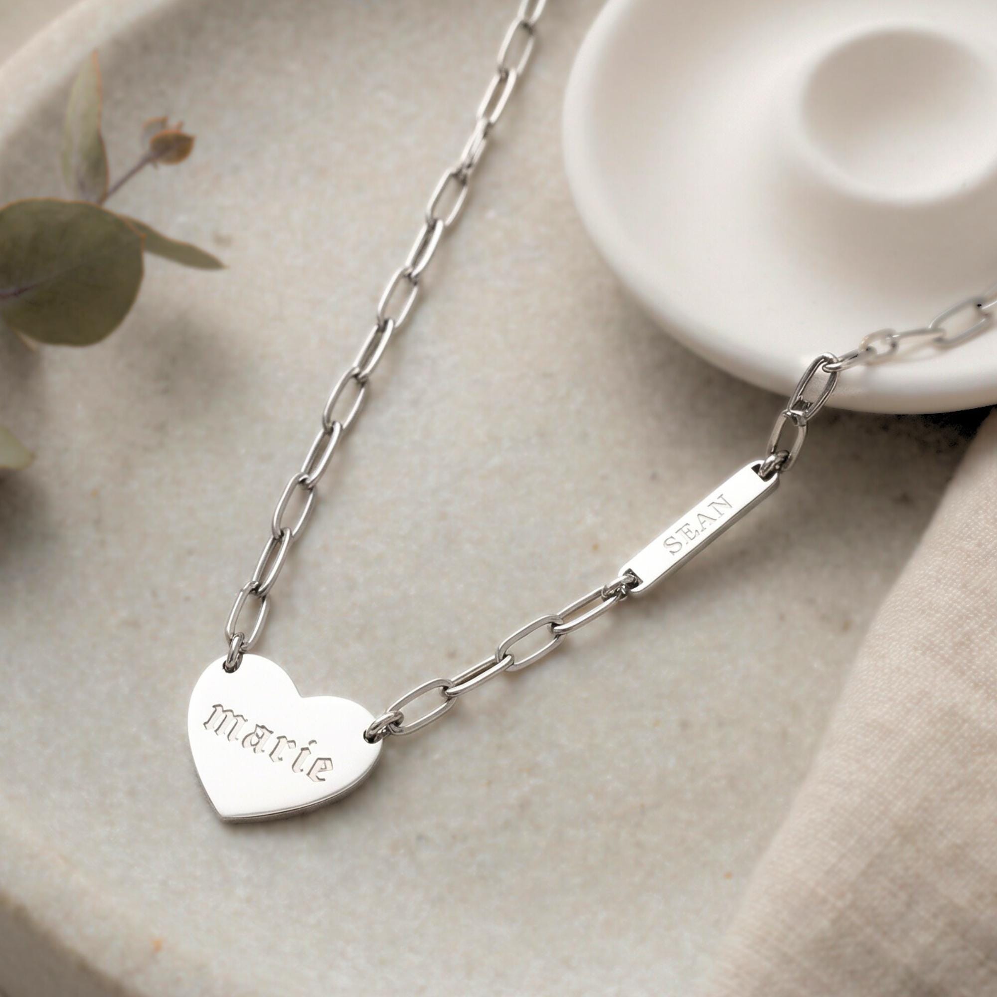 Personalized Paperclip Heart Tag Necklace with Double Engraved Names – the perfect blend of modern style!