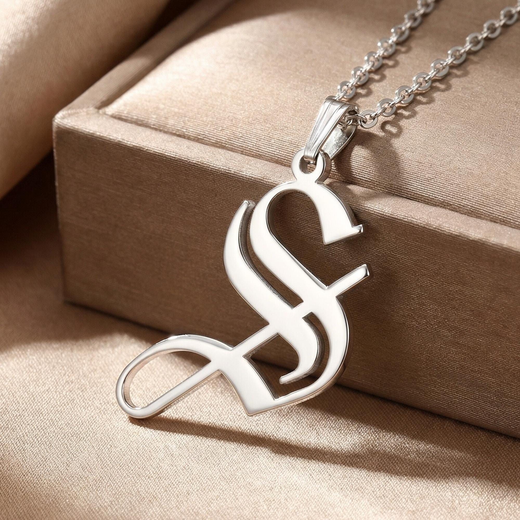 ✨ This Old English initial necklace features a bold Gothic font letter pendant, perfect for making a statement or gifting to someone special.
