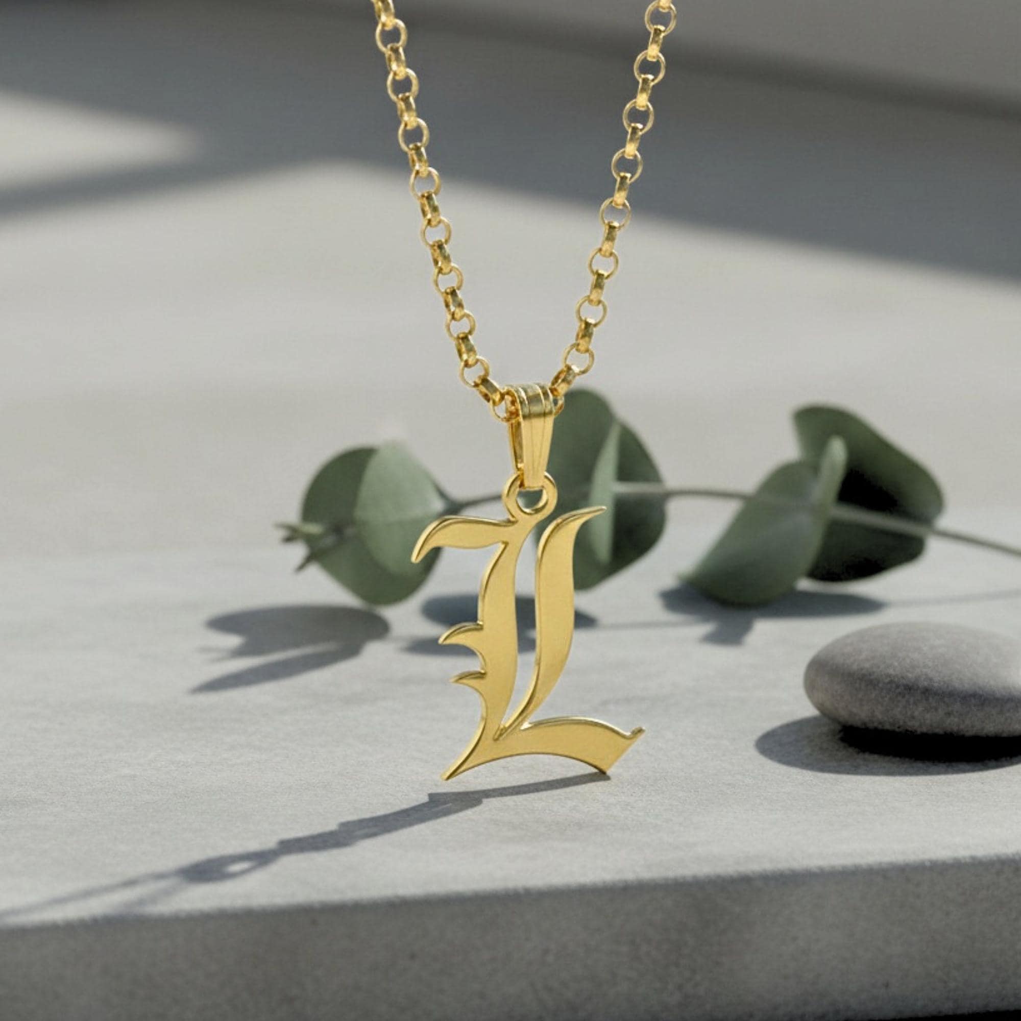 💖 This Old English Initial Necklace is a standout piece of personalized jewelry for both men and women. Crafted from 925 sterling silver, the bold Gothic font letter pendant is perfect for adding a customized touch to your style.