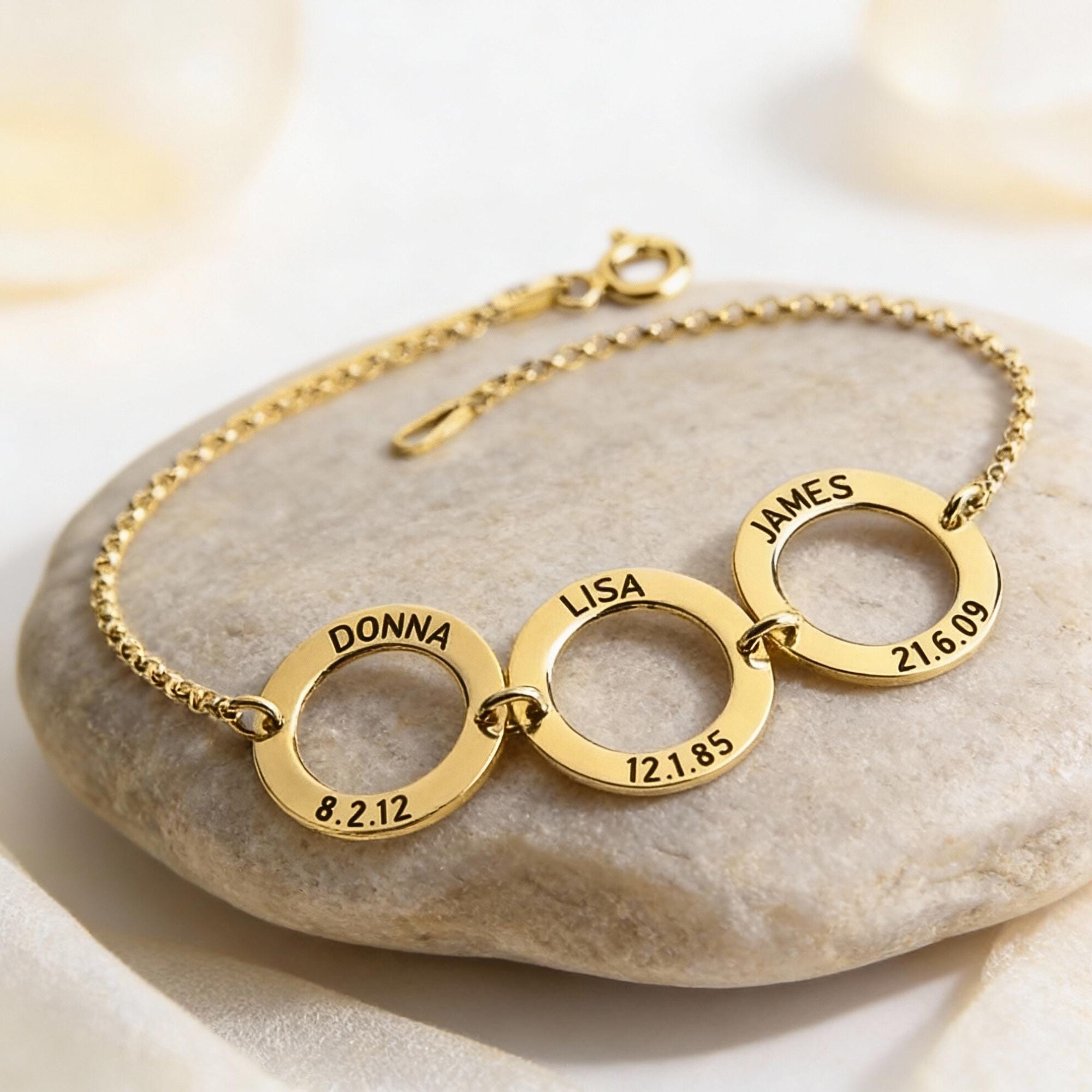 SO cute, bonus mom LOVED it (bracelet with 3 circles and names on it).