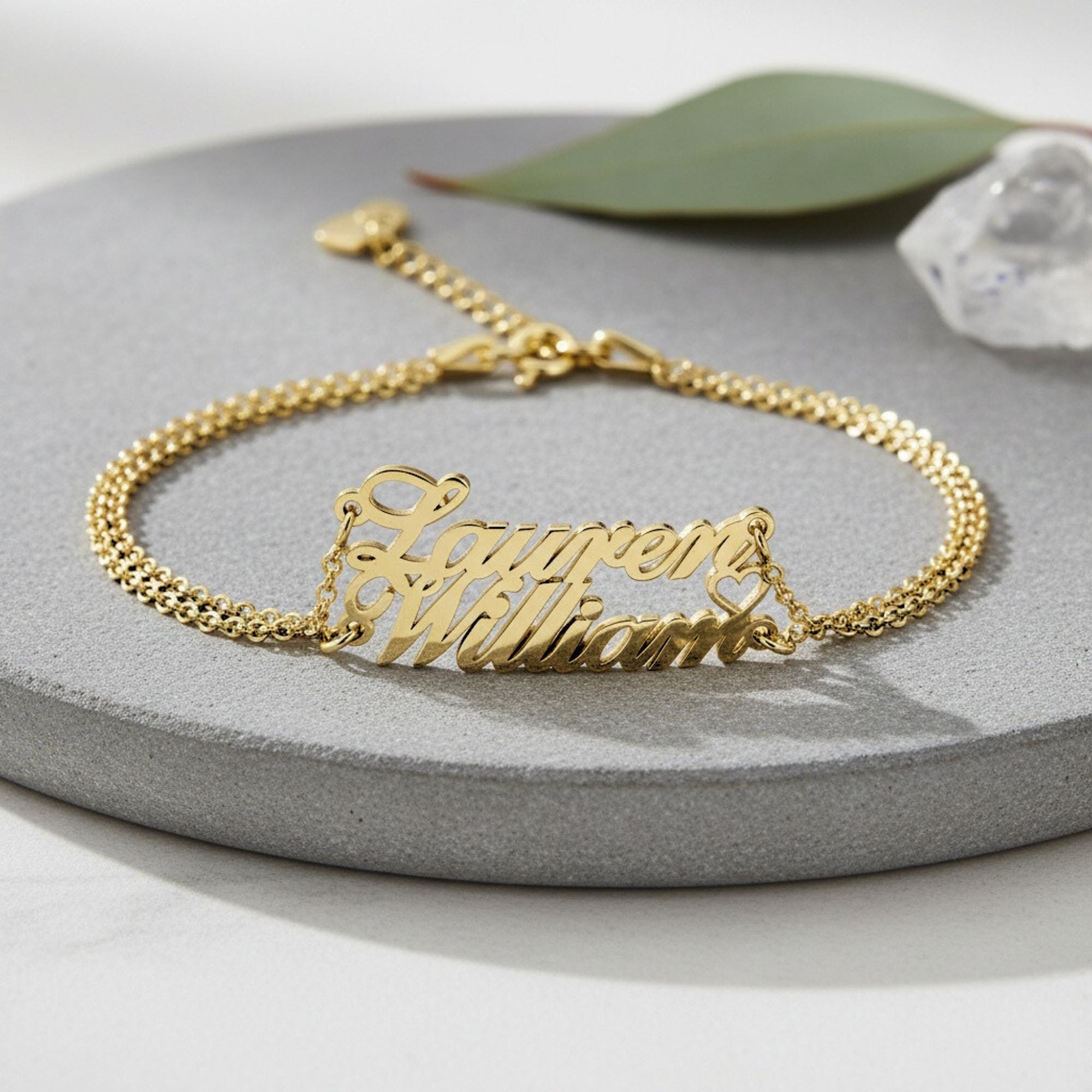 💎 There is no better way to show love than with this double-name bracelet for your loved one! This beautiful bracelet will touch the heart of your special someone, making it a cherished piece of jewelry.
