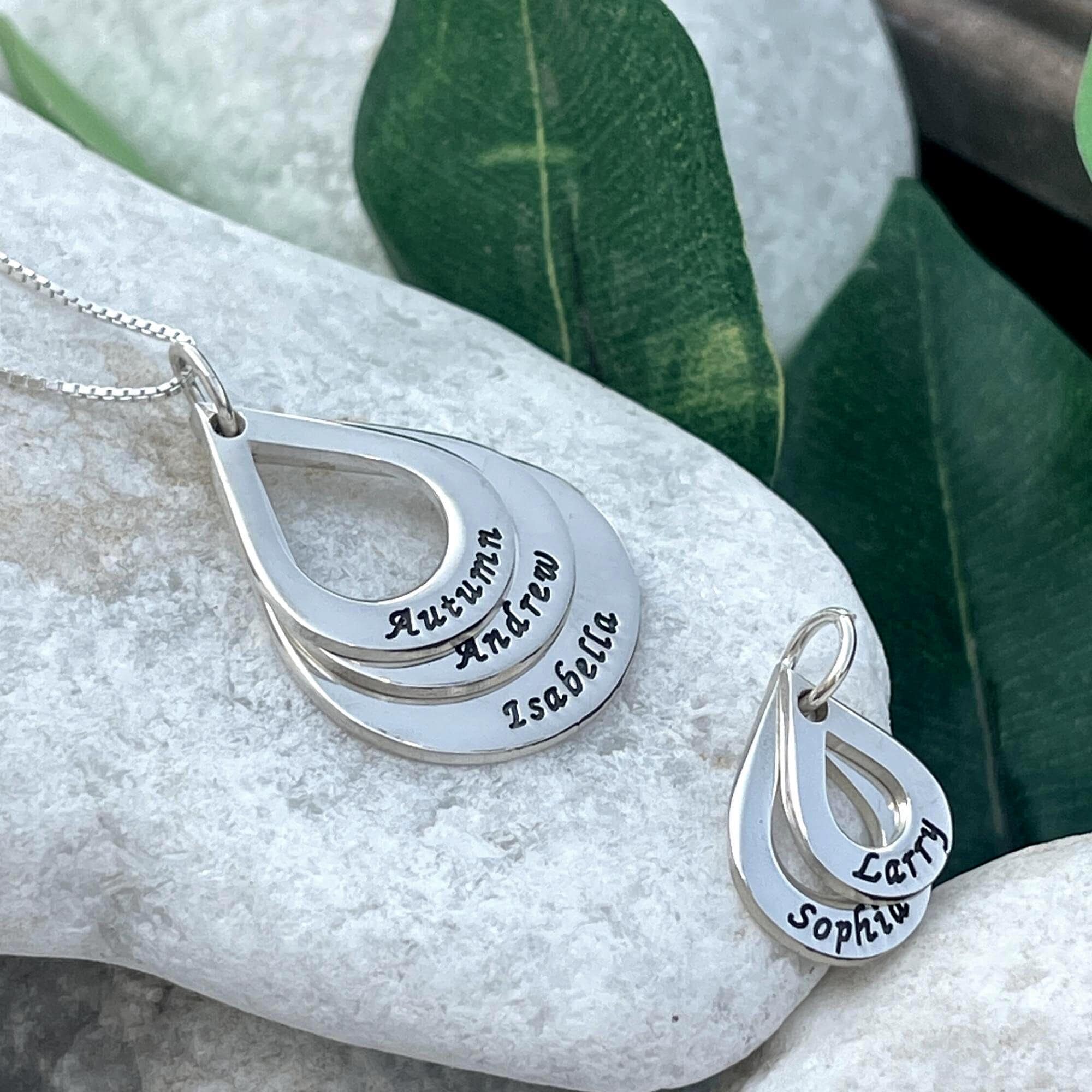 Please enter the name for each teardrop pendant when placing your order.