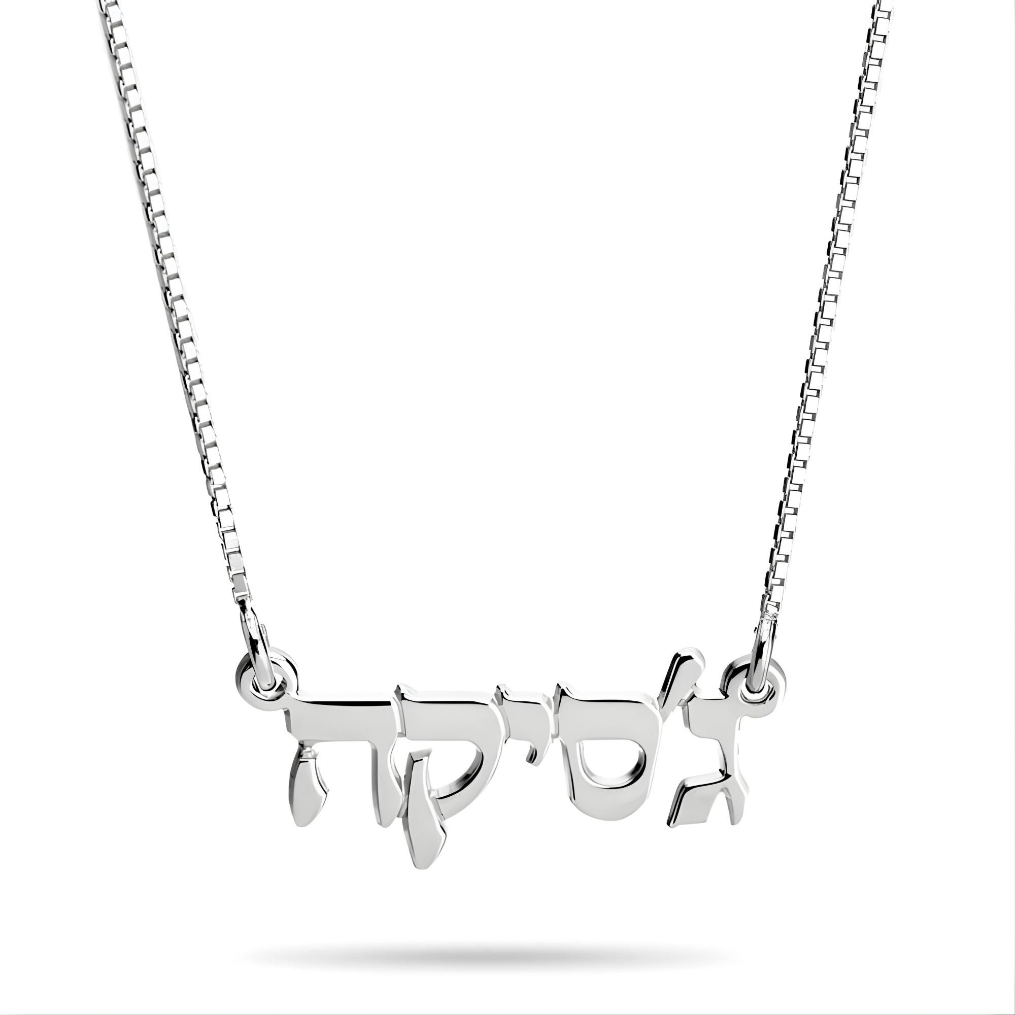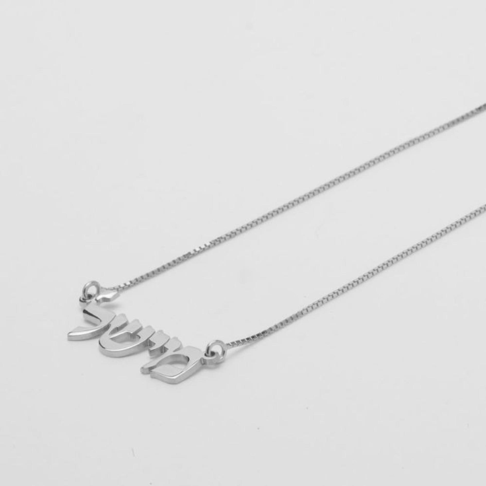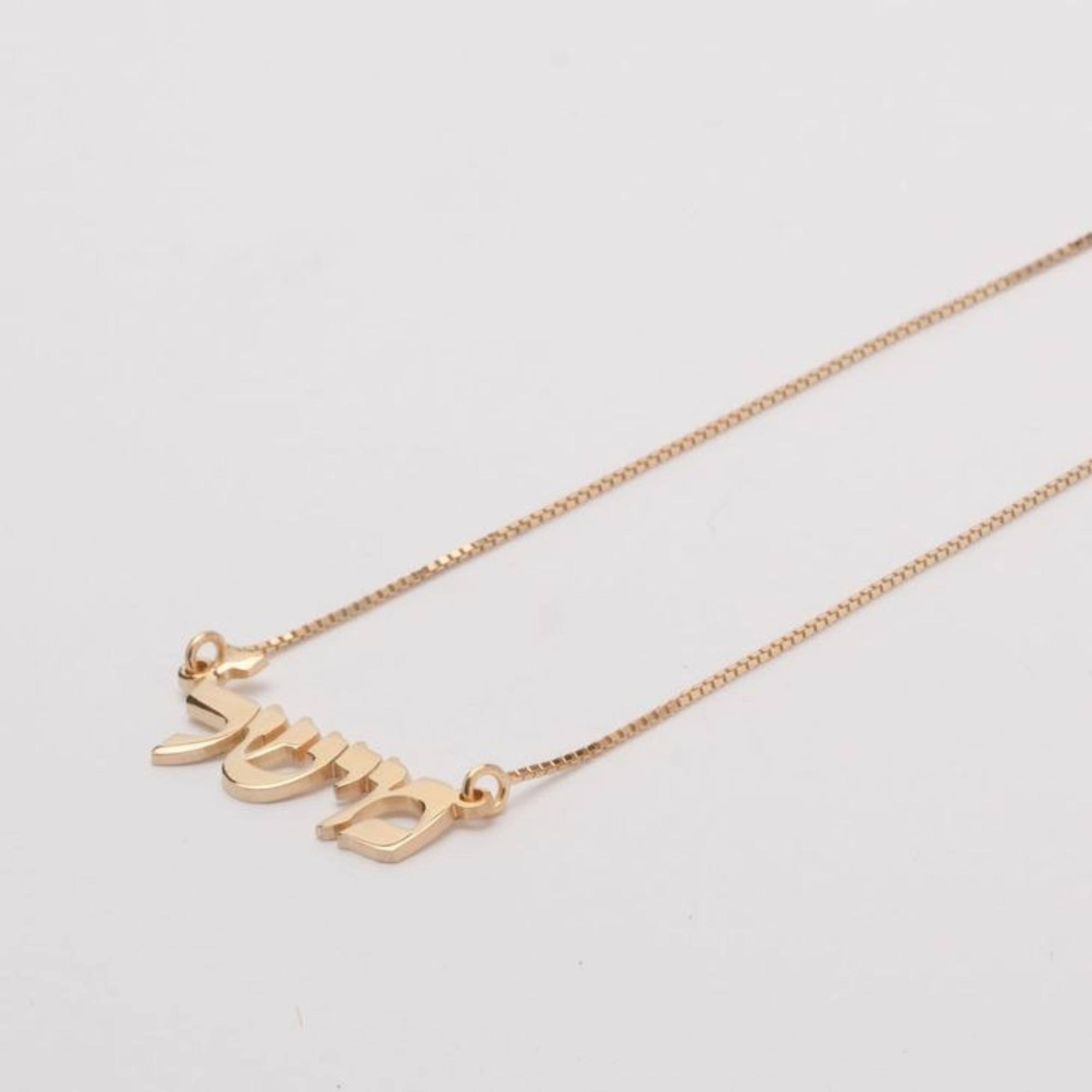 Provide your Hebrew name or word and select the desired chain length to create your personalized gold Hebrew name necklace.