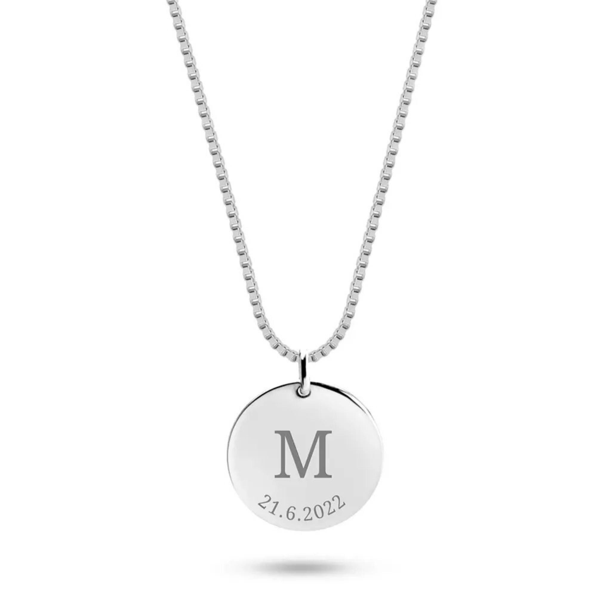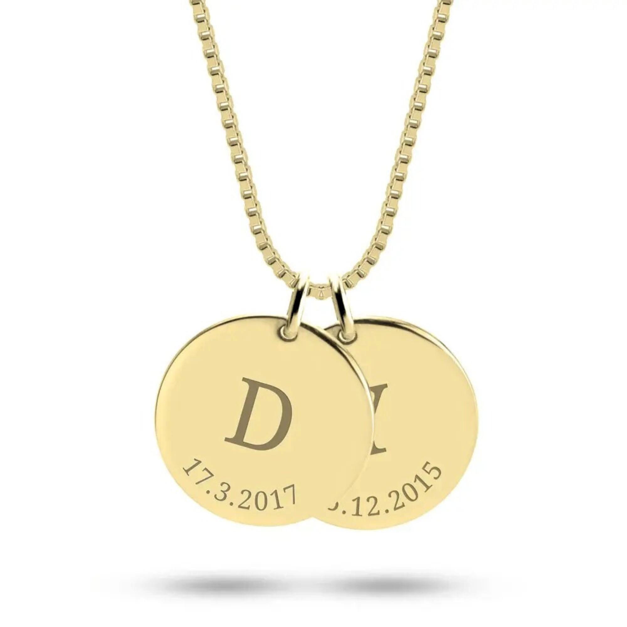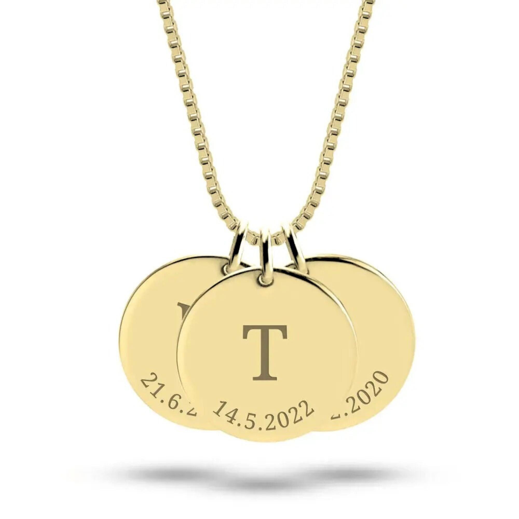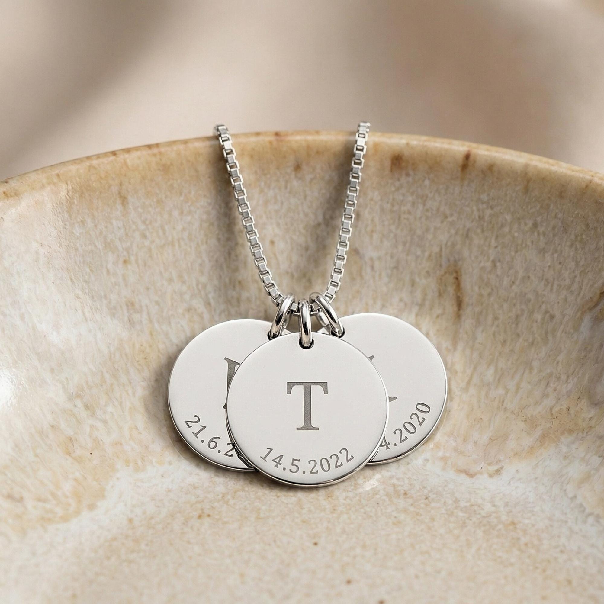š¹Celebrate your family with this personalized initial disc necklace, featuring up to five engraved round charms with your childrenās initials and meaningful dates.