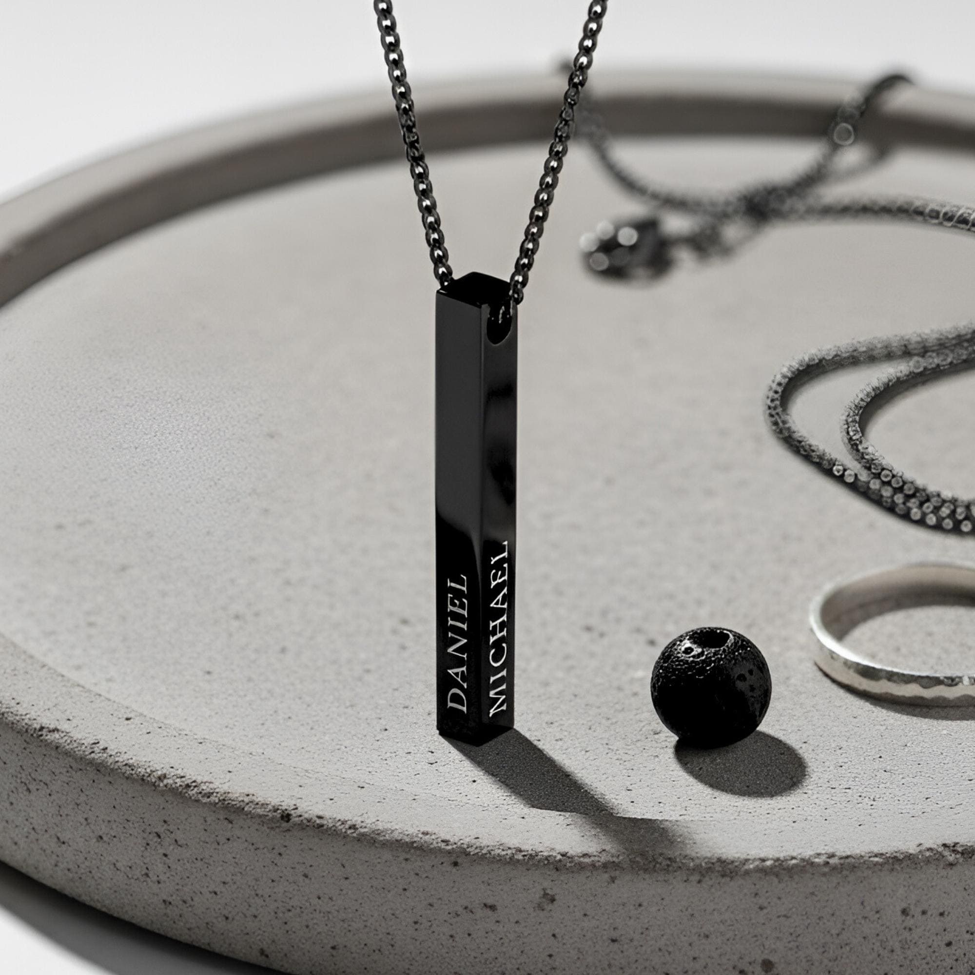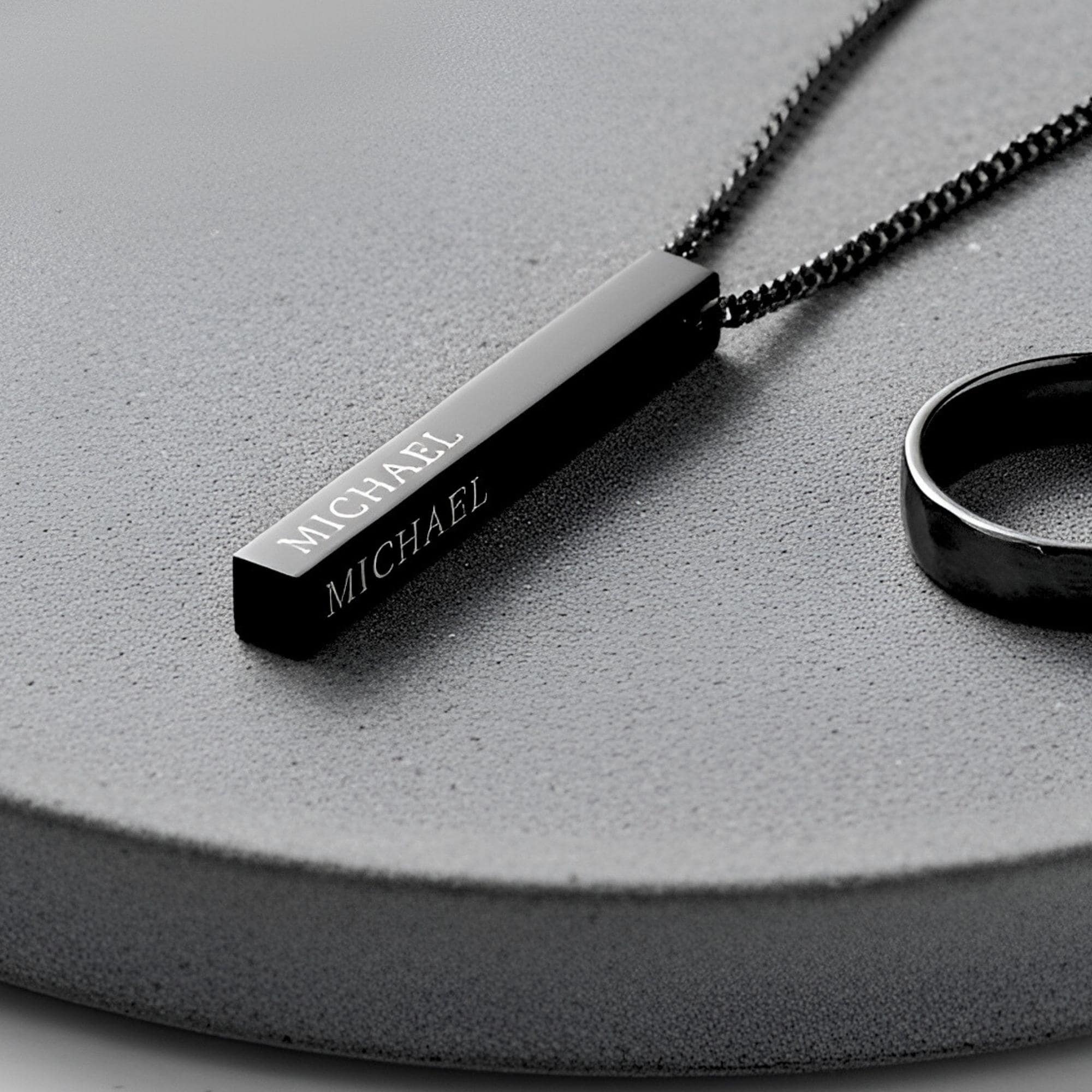 This sleek Black 3D Bar Necklace is the perfect personalized gift for Dad.