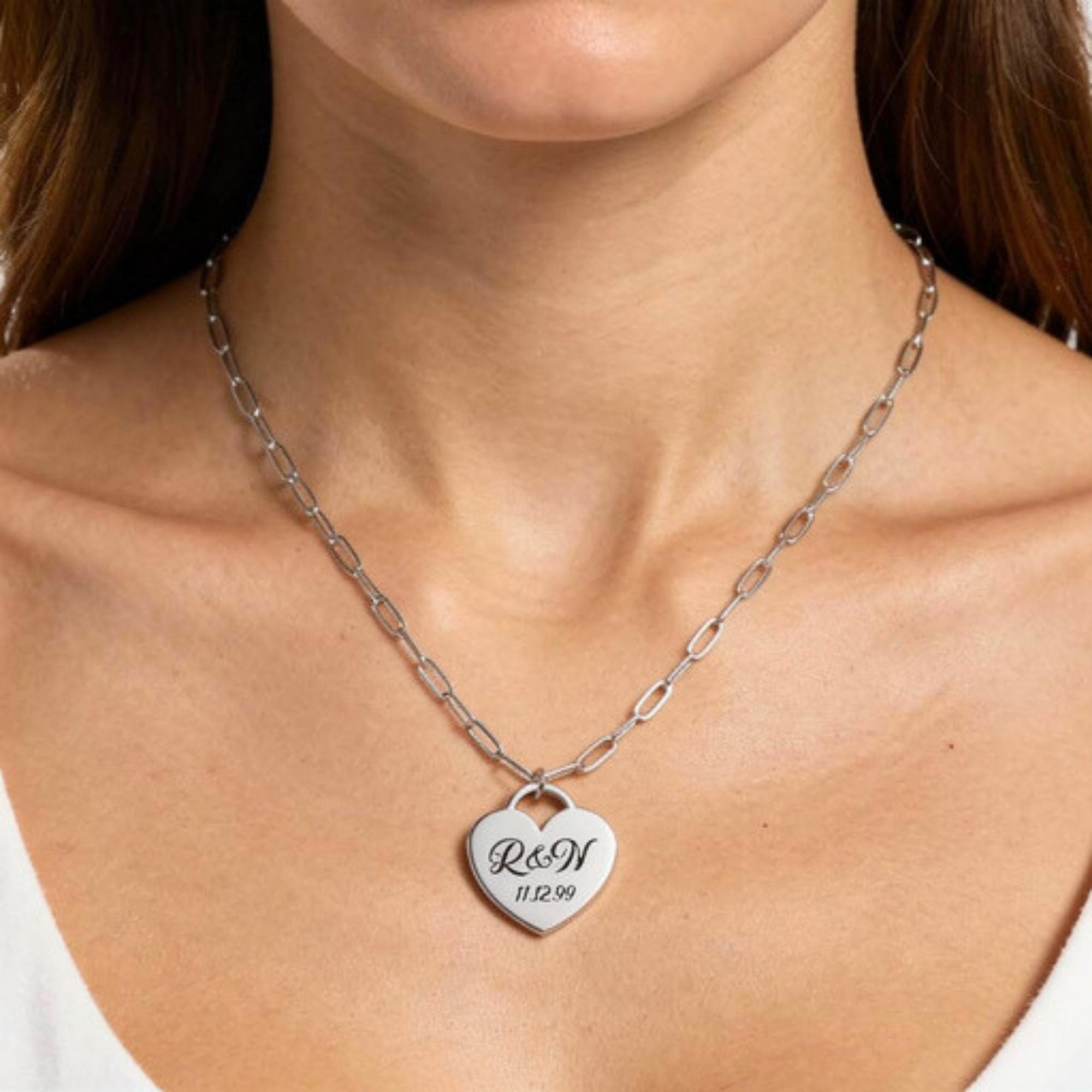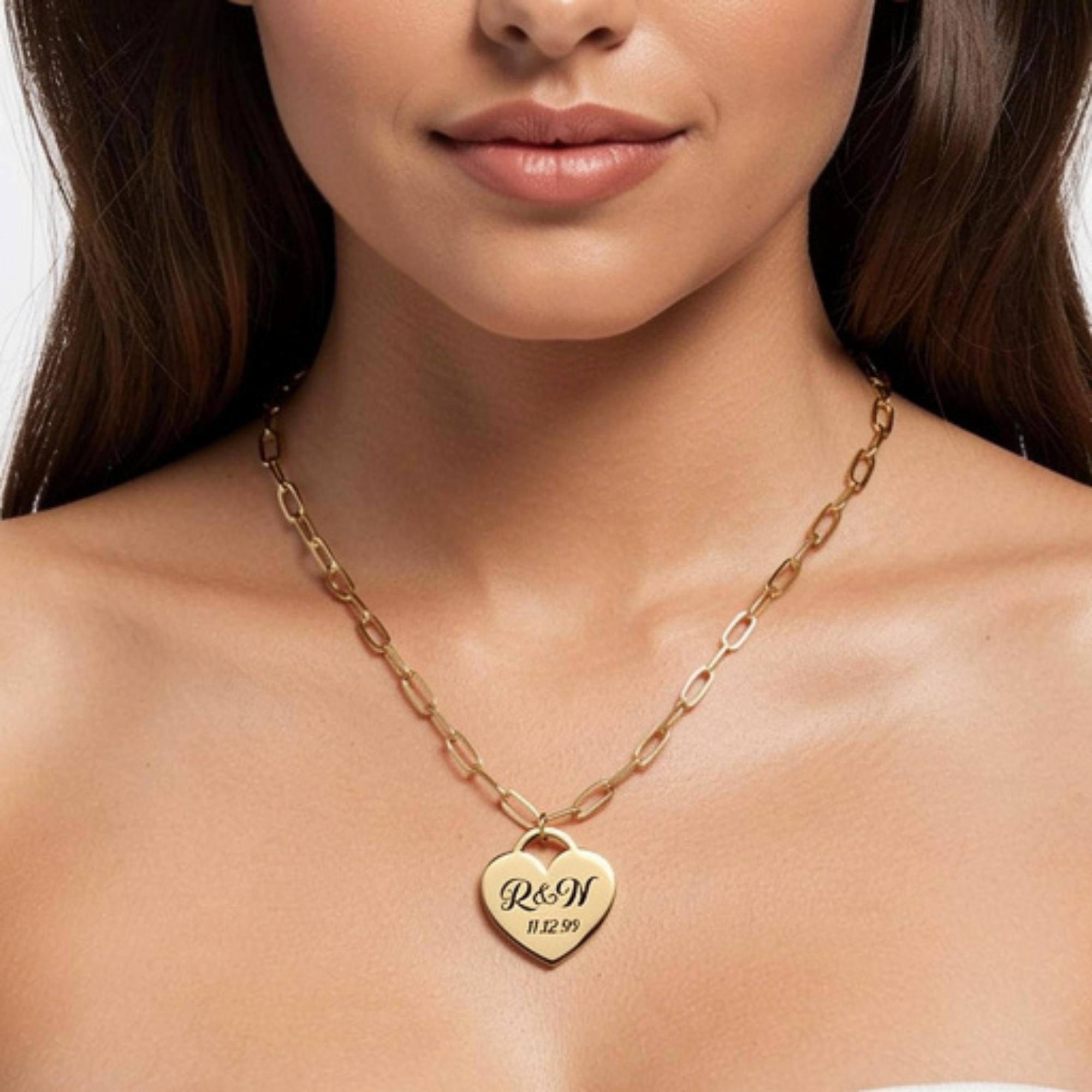 ★ STYLE: Paperclip Necklace with Engraved Heart Tag