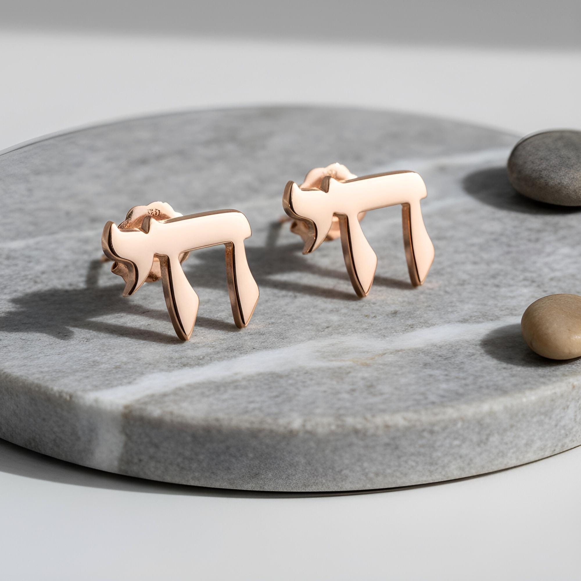 Embrace faith and tradition with this Gold Plated Hebrew Chai Earring Set, a beautifully designed pair of Jewish stud earrings that symbolize life, blessing, and spiritual protection. The Chai symbol, meaning "life" in Hebrew, is a timeless icon in Judaica jewelry, representing good fortune and well-being. Crafted from 925 Sterling Silver and plated with 24K Gold or Rose Gold, these Chai earrings are a meaningful and elegant accessory, perfect for daily wear or Jewish celebrations.