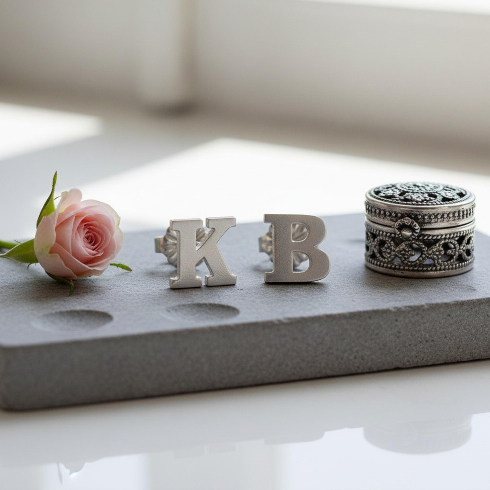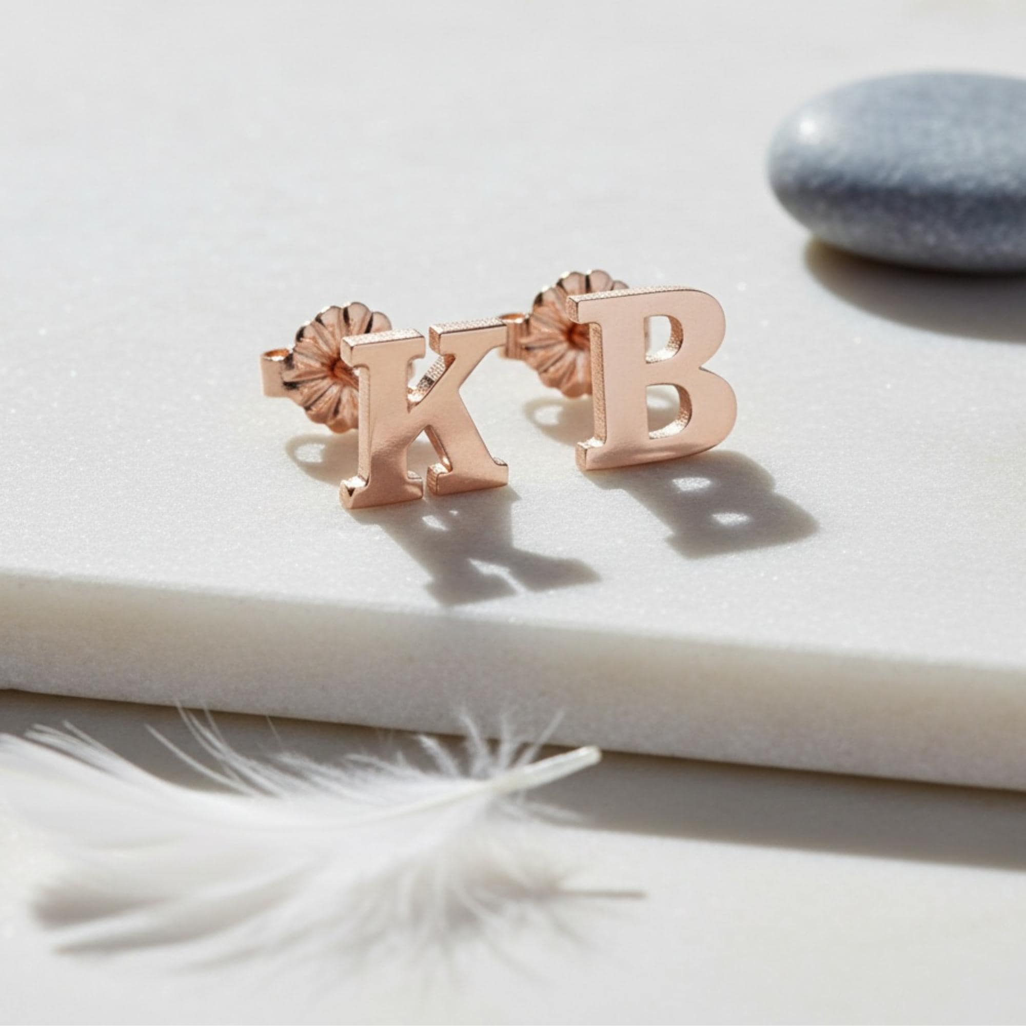 These personalized initial stud earrings are crafted from solid 925 sterling silver and designed for everyday wear with a personal story.
