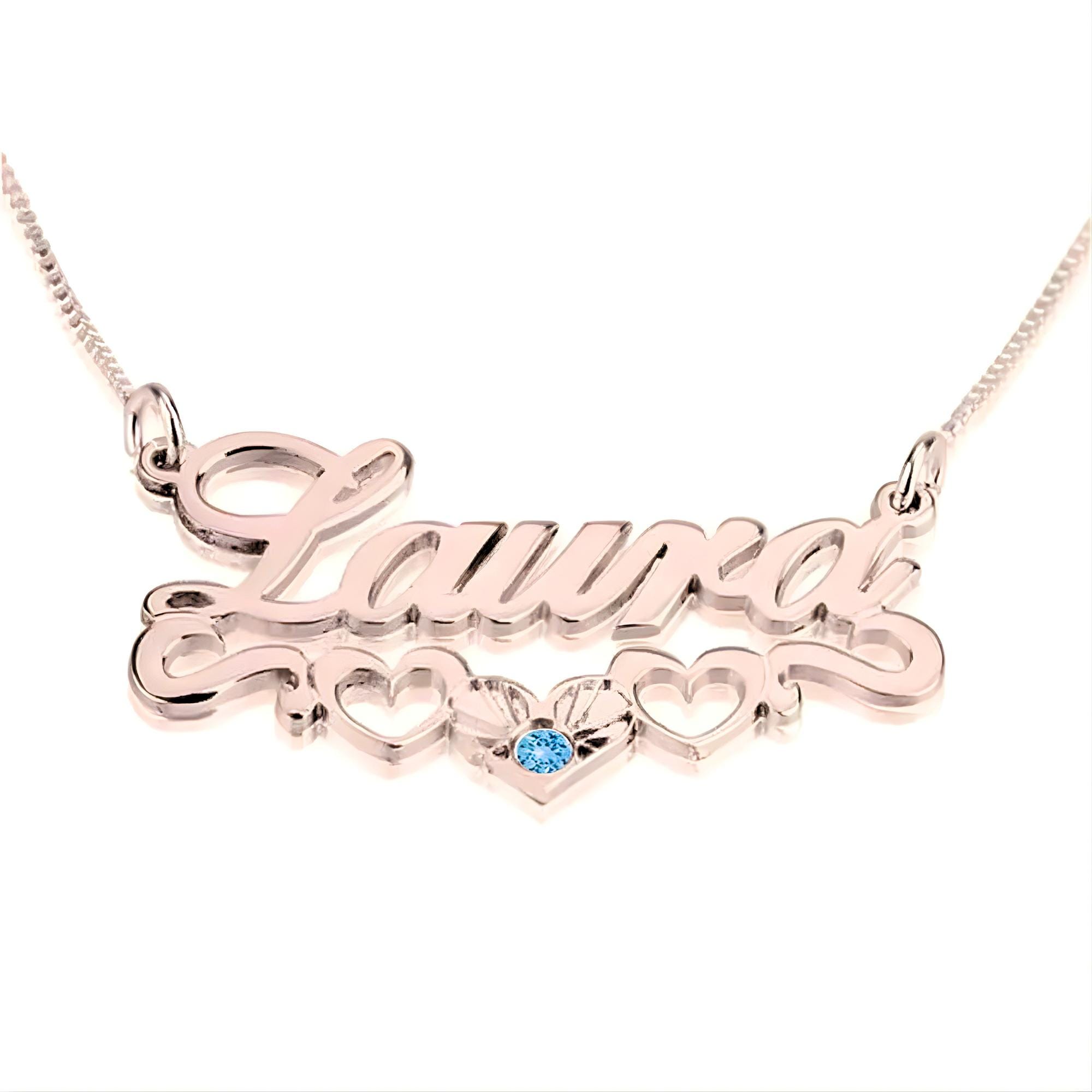 This personalized birthstone heart name necklace is handcrafted from solid 925 sterling silver and designed to celebrate love, identity and connection.