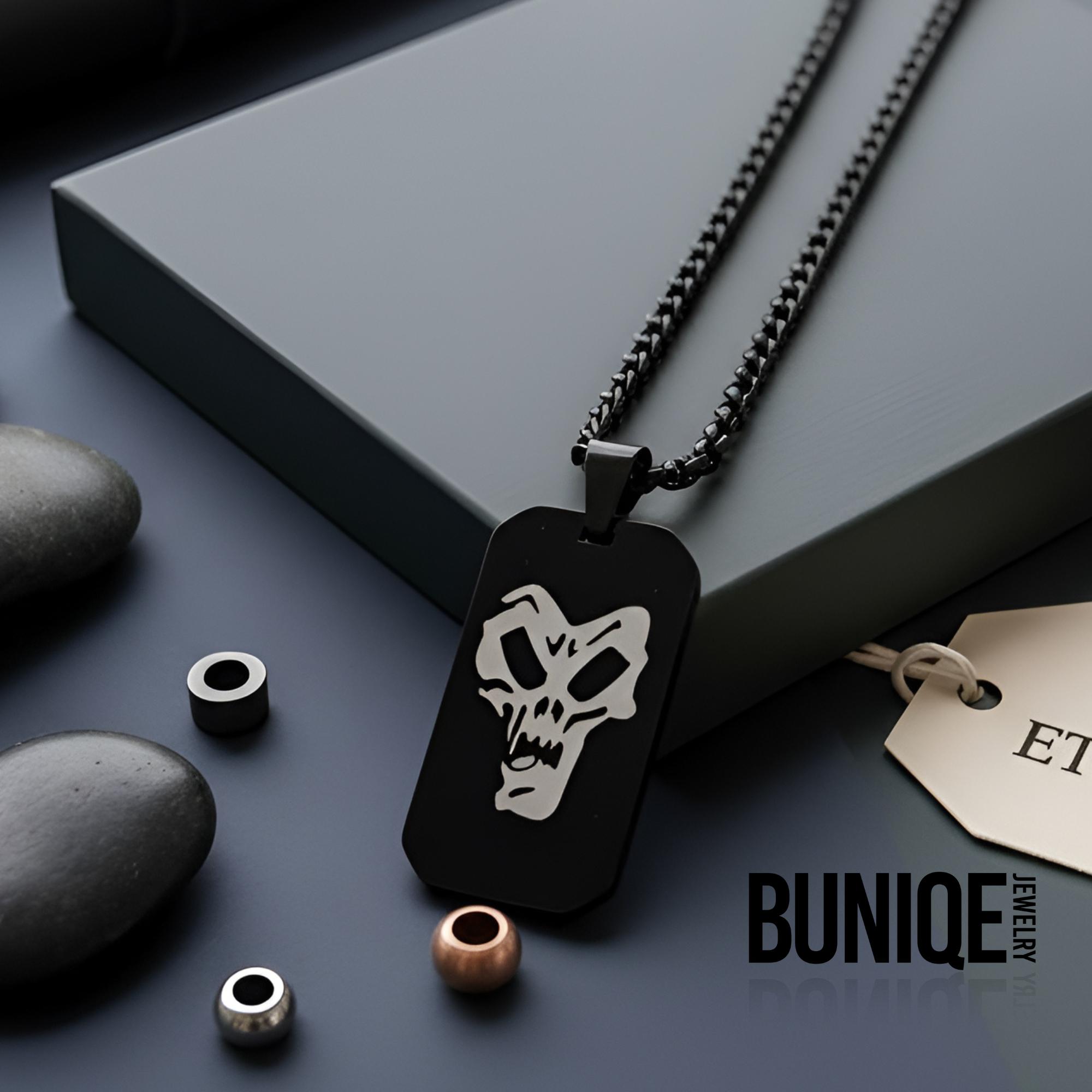 Handcrafted from premium stainless steel with a sleek black onyx finish, this durable pendant can be custom engraved with your logo, initials, date, or message — on one or both sides.