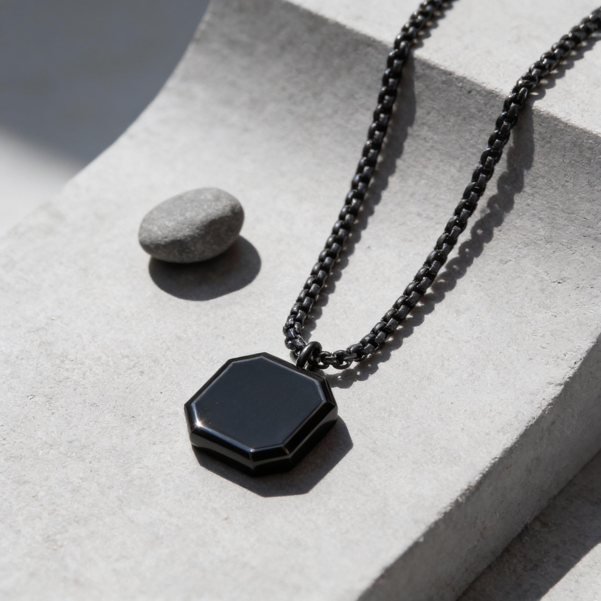 🖤 Crafted for strength, protection, and style, this Black Onyx Stone Tag Necklace for Men is a bold and meaningful piece that combines modern elegance with personal secret message engraved on the back side of the tag pendant.