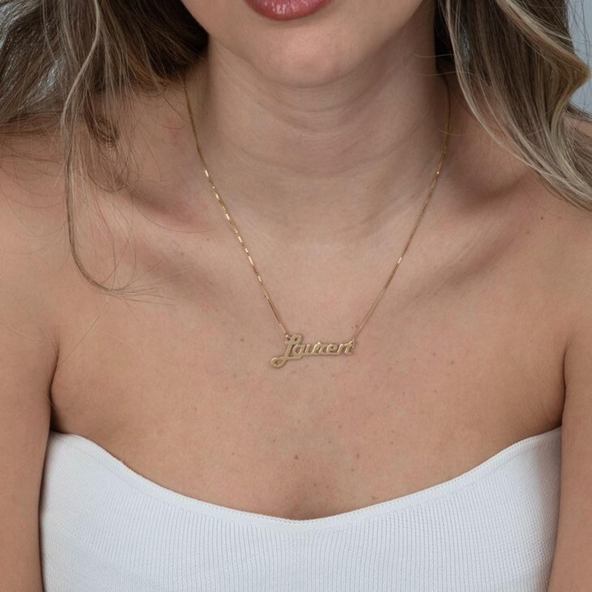 This retro-inspired name necklace adds a vintage touch to any outfit, with durable materials that ensure its lasting charm. A meaningful, stylish gift that celebrates individuality, this custom necklace is sure to make a statement.
