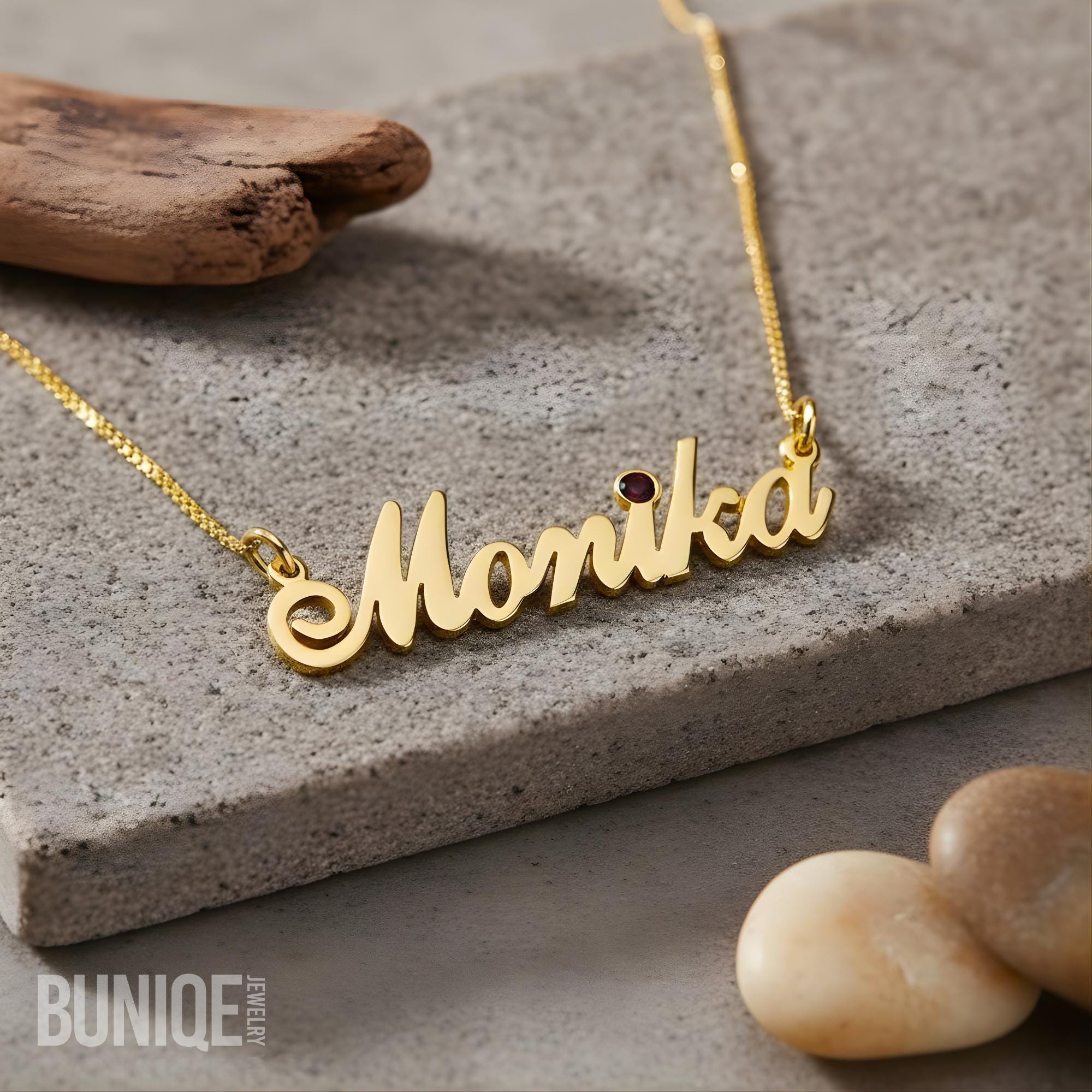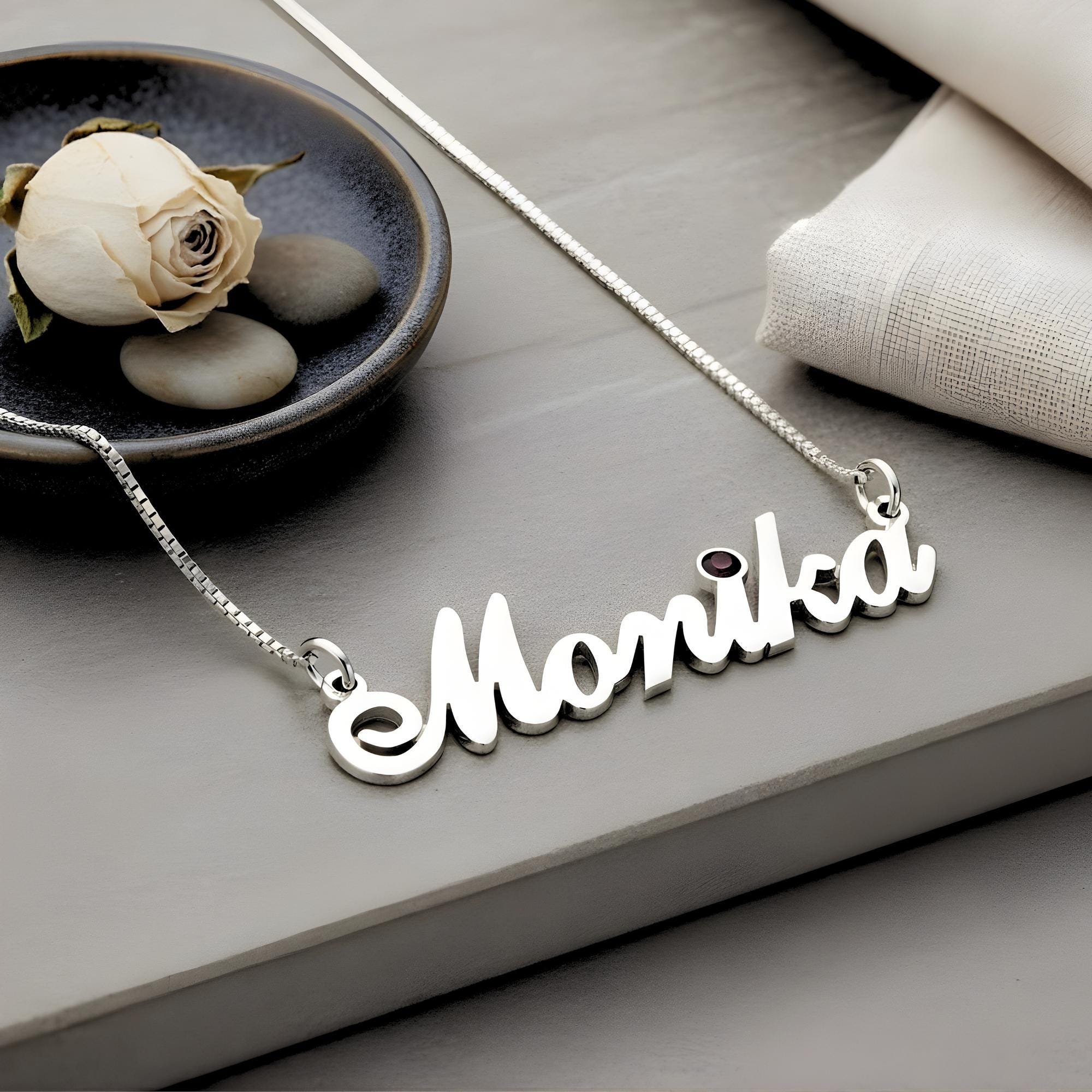 This personalized birthstone name necklace is handcrafted from solid 925 sterling silver and designed to turn a simple name into a beautiful everyday keepsake.