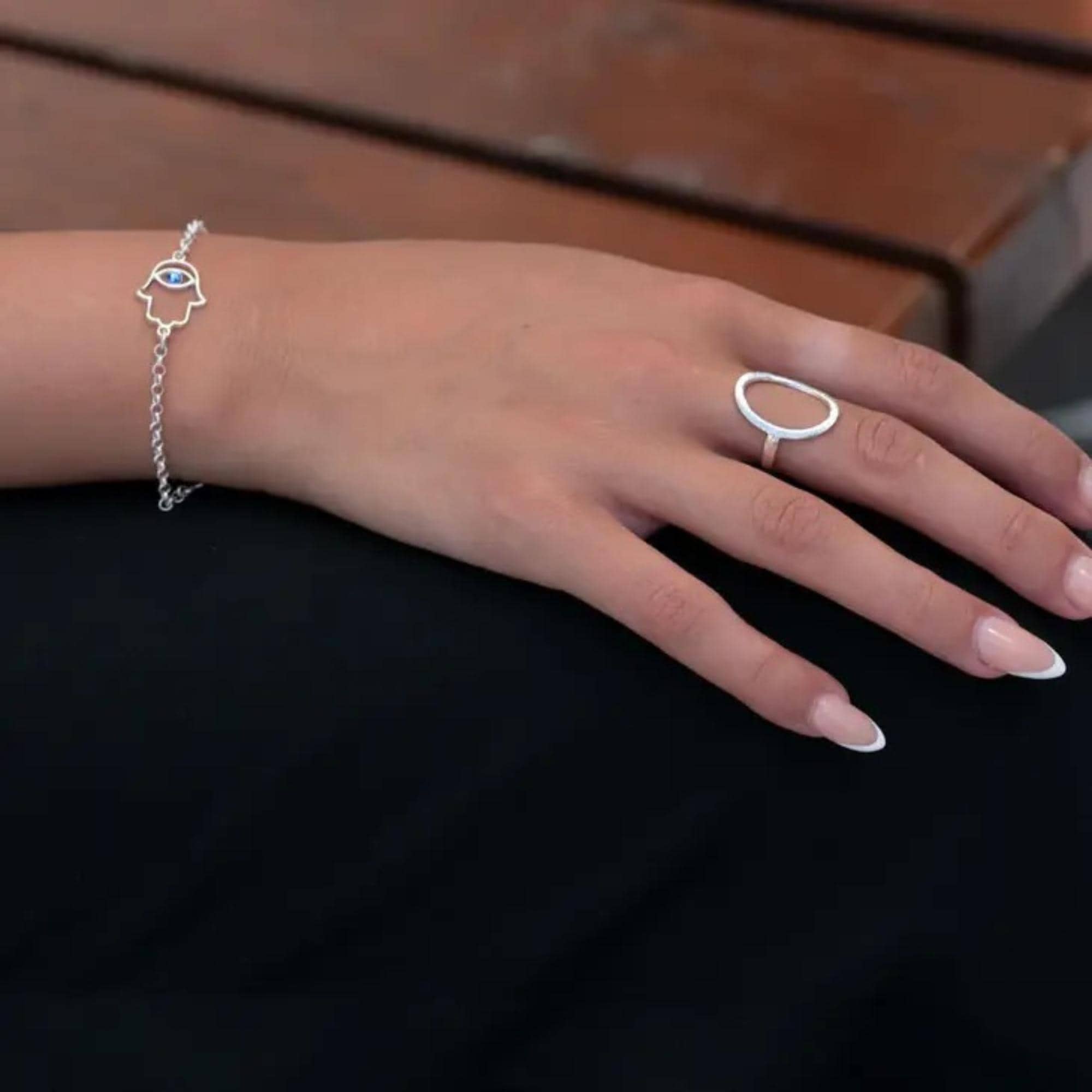 Embrace a symbol of protection and positivity with this Evil Eye Hamsa Bracelet, beautifully adorned with a birthstone for a personalized touch.