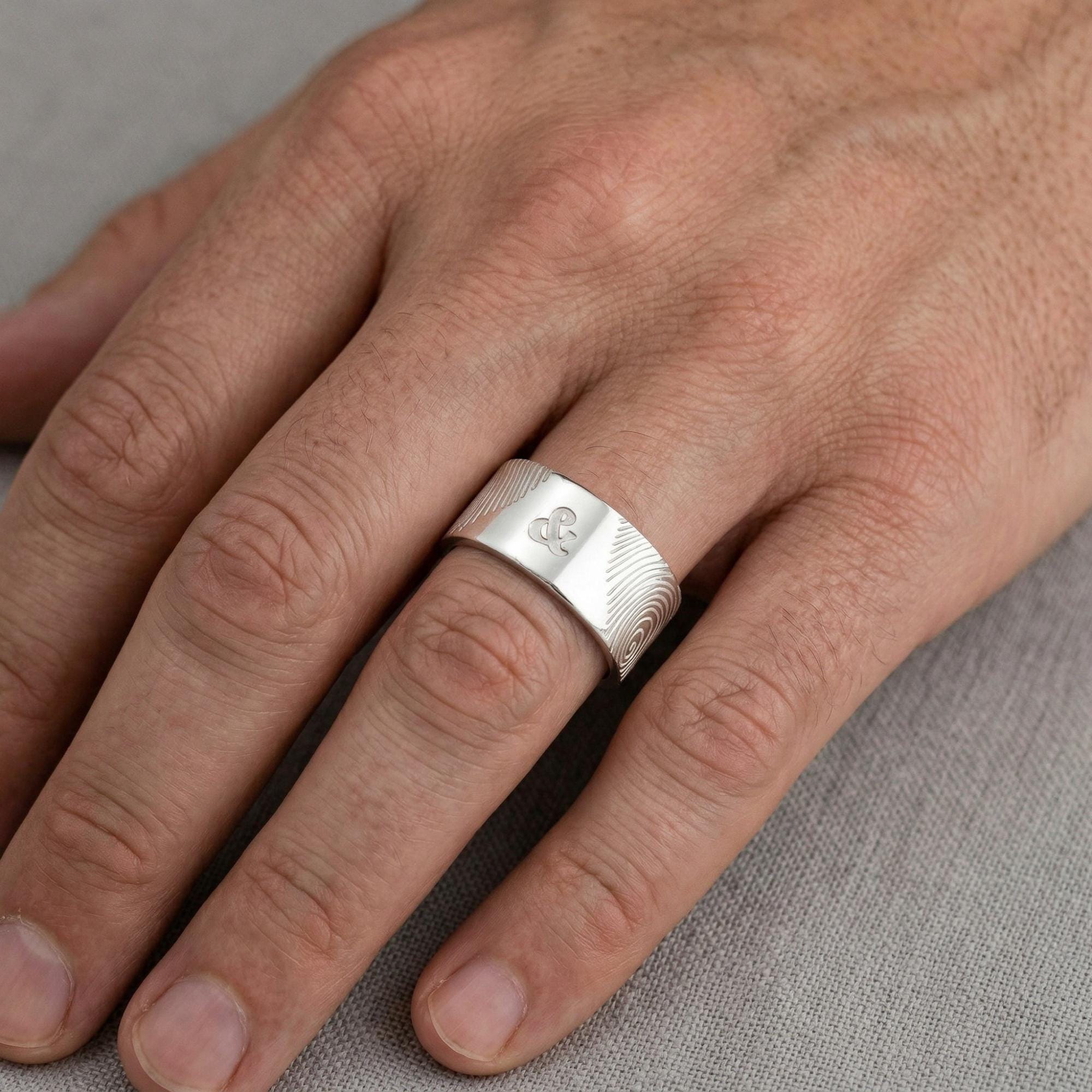 Handcrafted from 925 Sterling Silver, Gold, or Rose Gold Plated, each band features a deep-etched fingerprint design, symbolizing love, loyalty, and connection.