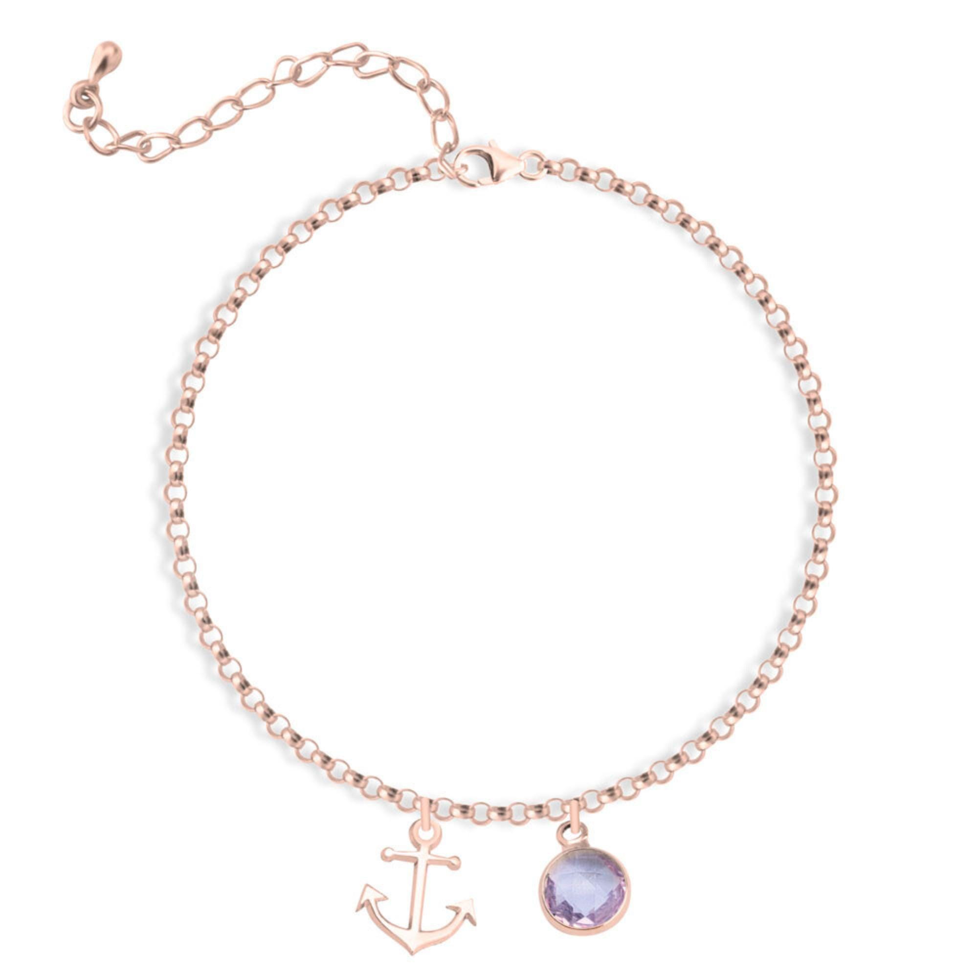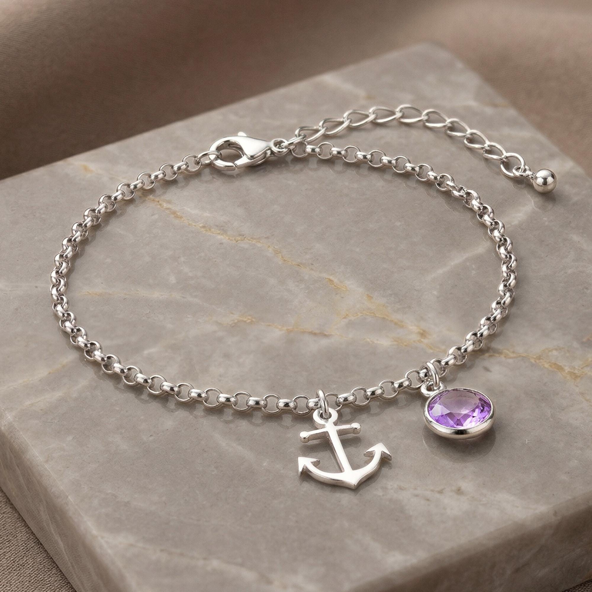 This charming anklet features a delicate anchor charm alongside a personalized birthstone, making it a stylish and meaningful accessory perfect for any occasion.