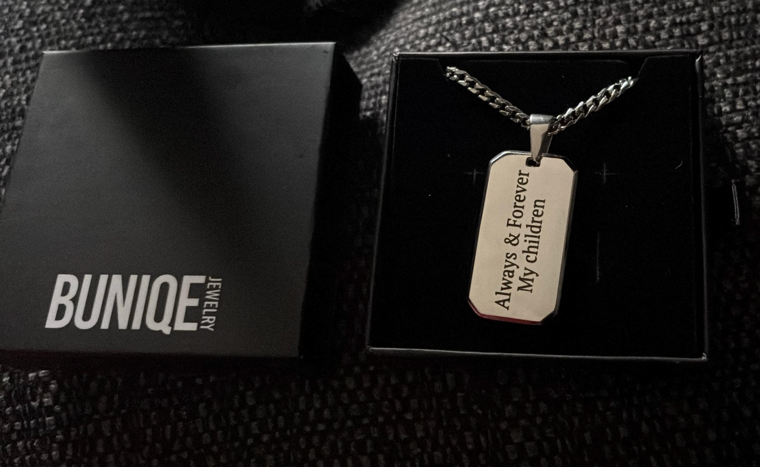 The masculine black curb chain adds a bold touch, making this necklace the perfect gift for Father’s Day, birthdays, anniversaries, or any special occasion.