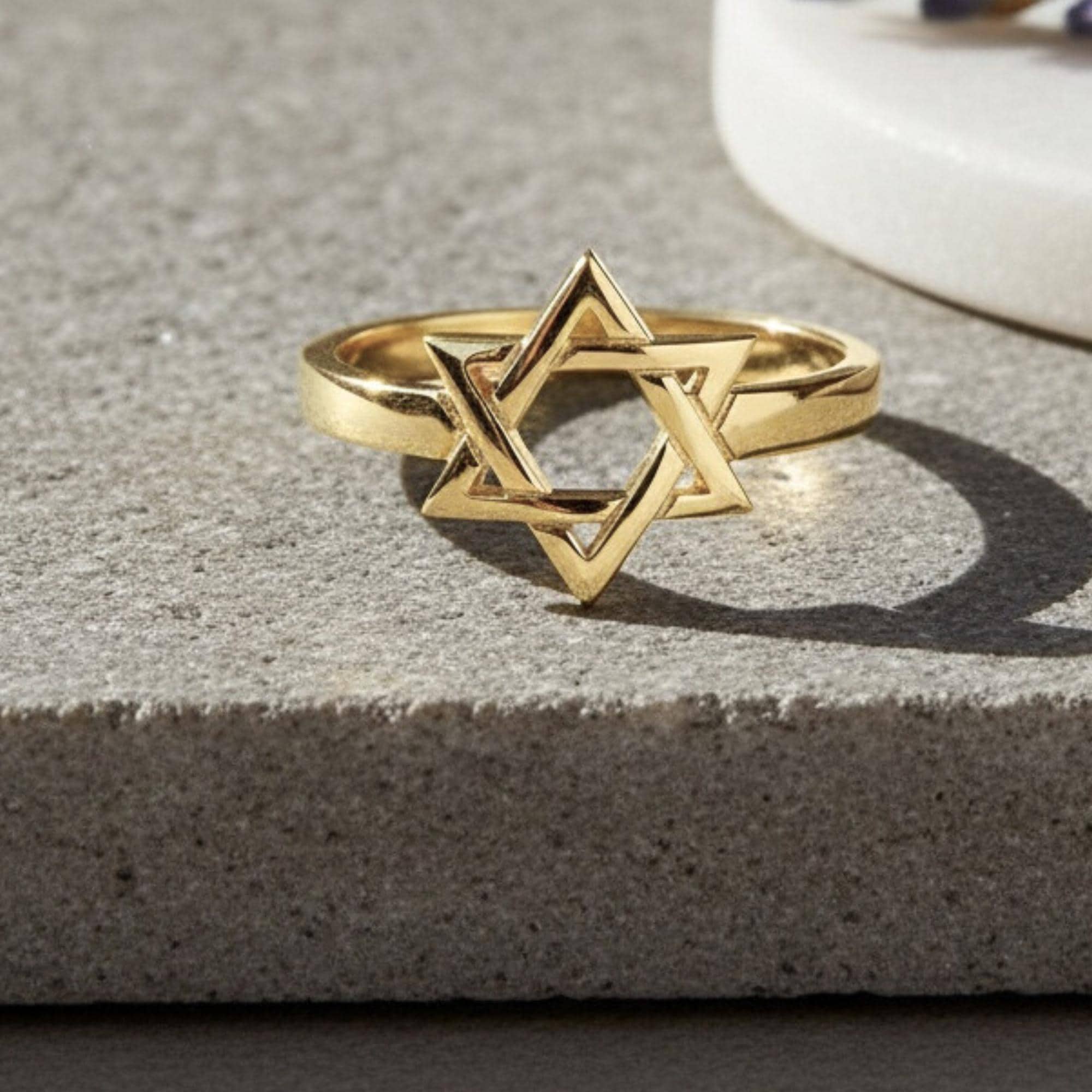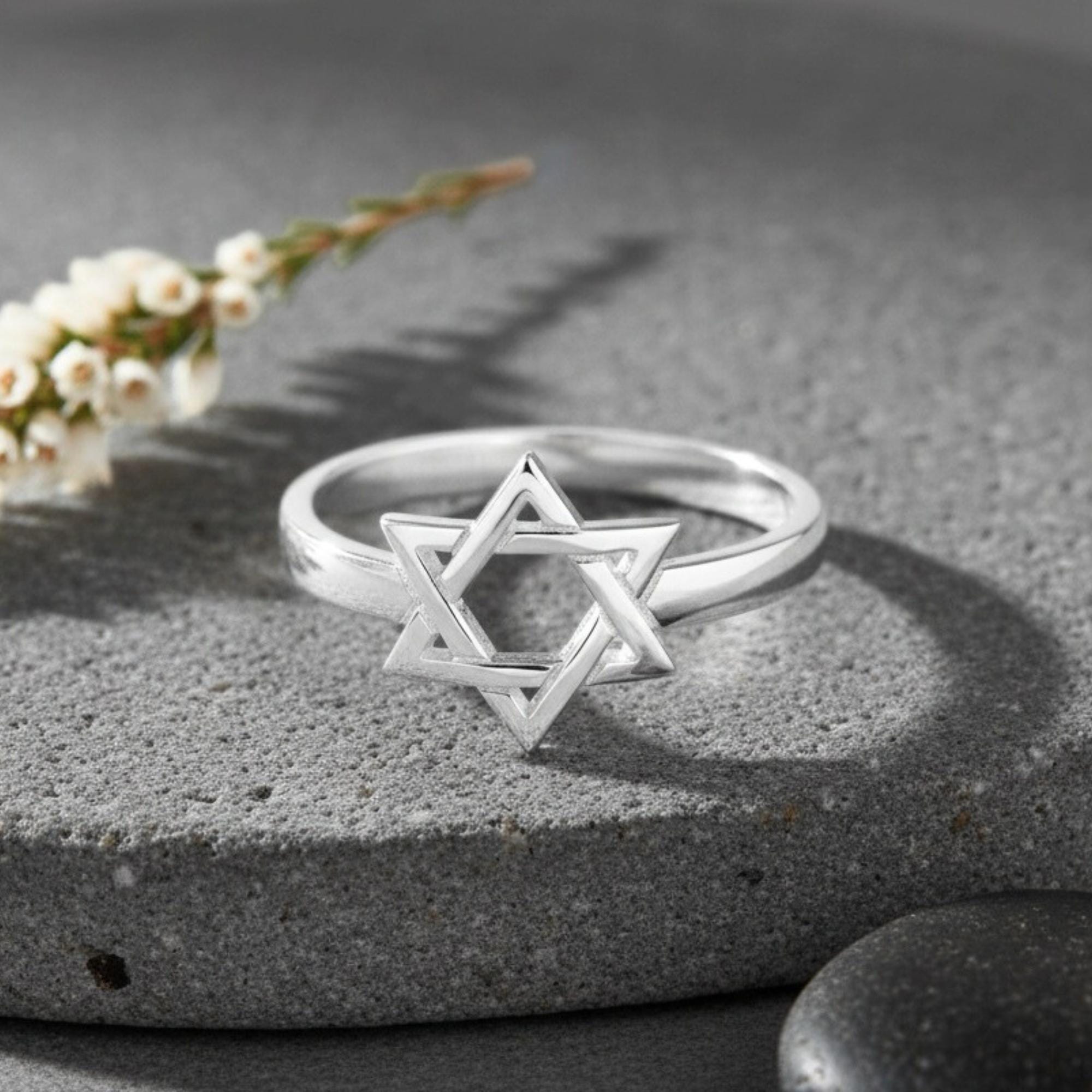 This Star of David ring is crafted from solid 925 sterling silver or finished with 24K gold or rose gold plating, creating a meaningful piece of Jewish jewelry you can wear every day.