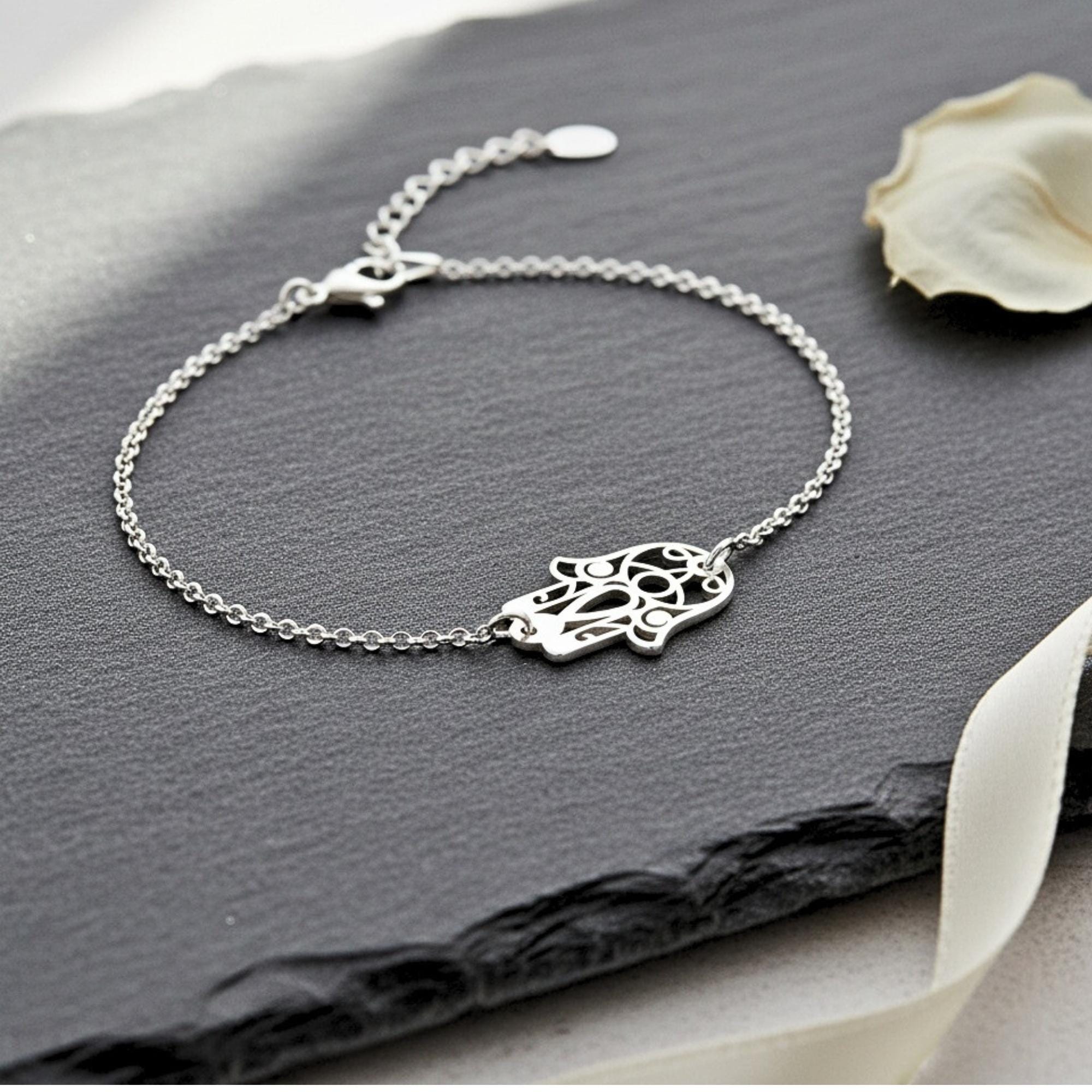 Please select the material and chain length when ordering this custom Hamsa bracelet.