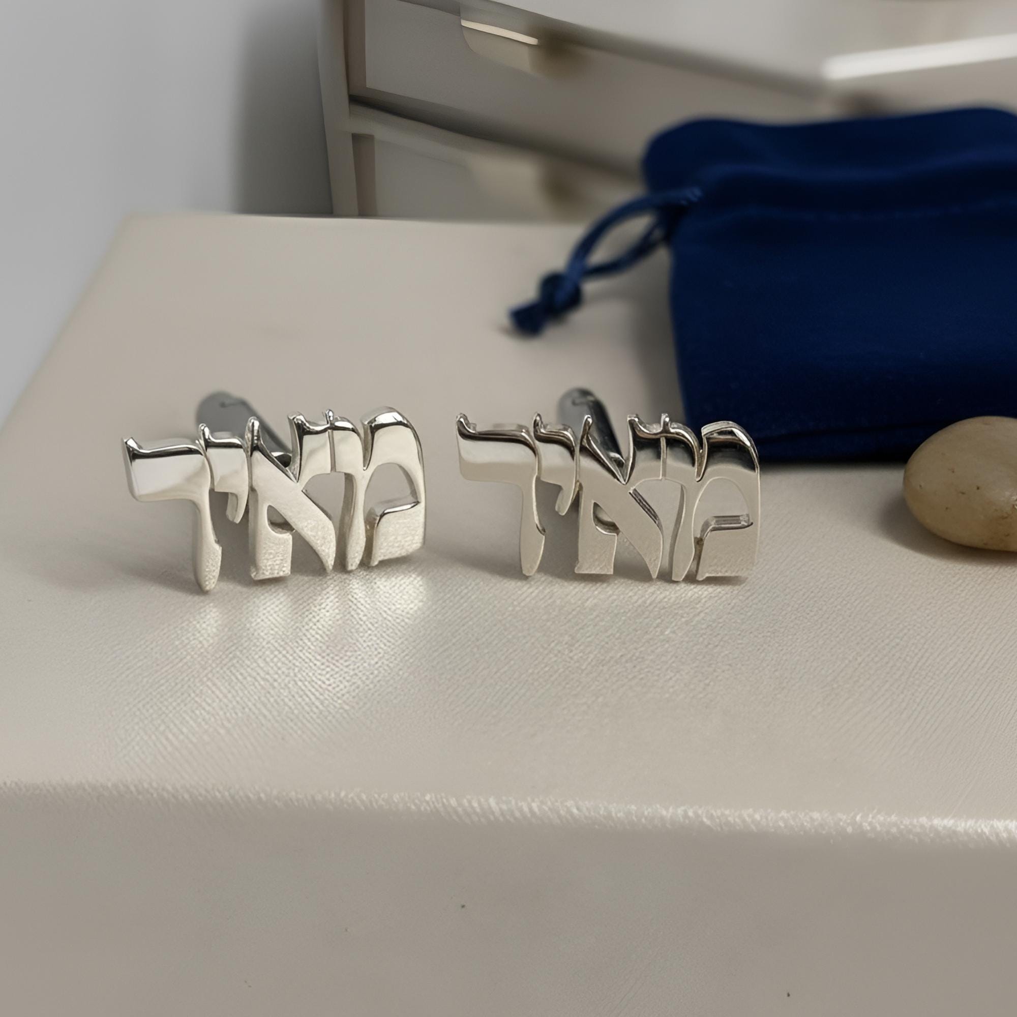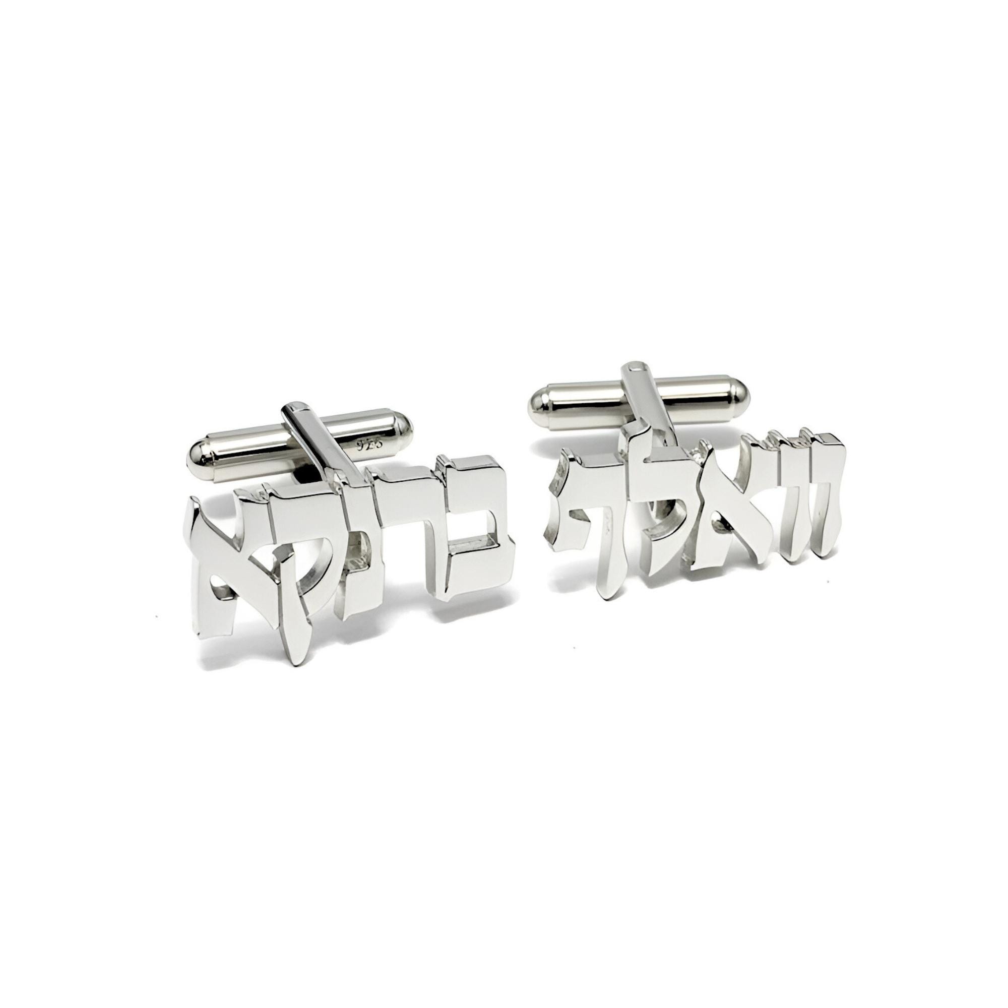 Sterling Silver Hebrew Cufflinks – Custom Judaica Gift for Him, Handmade in Jerusalem