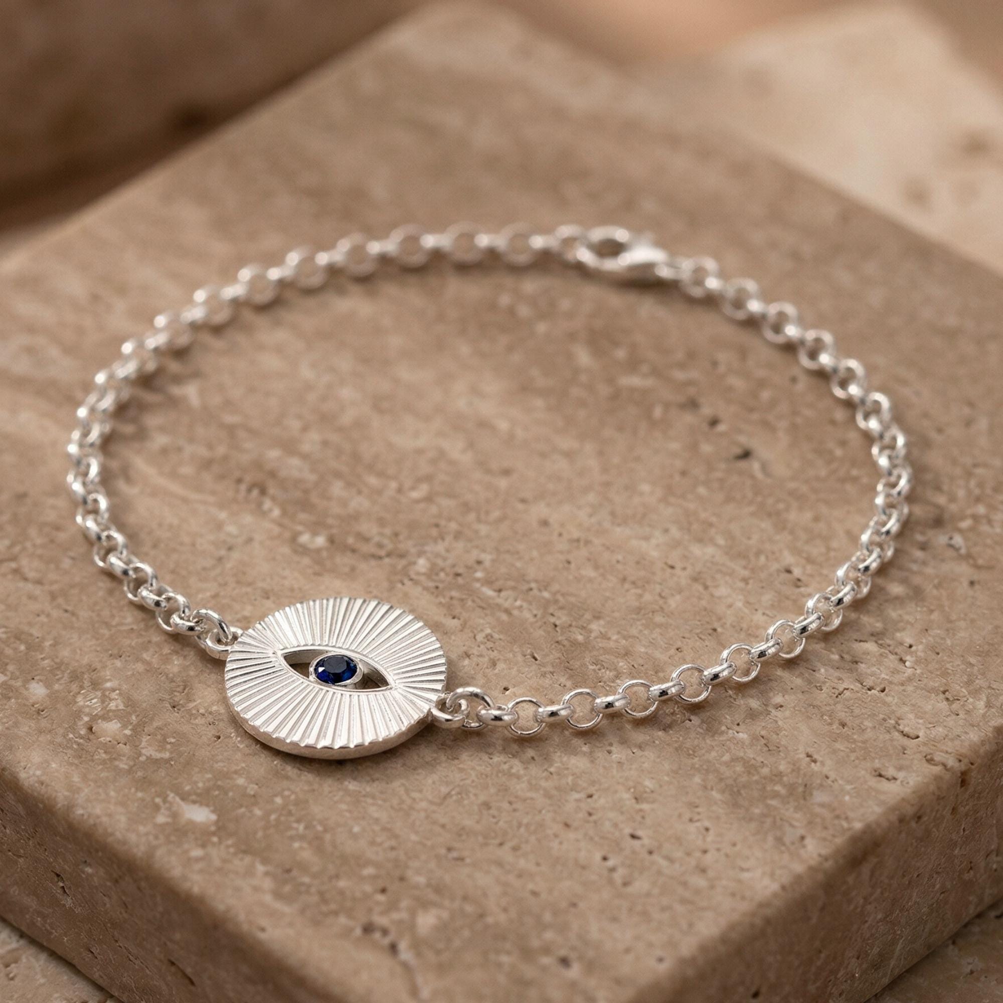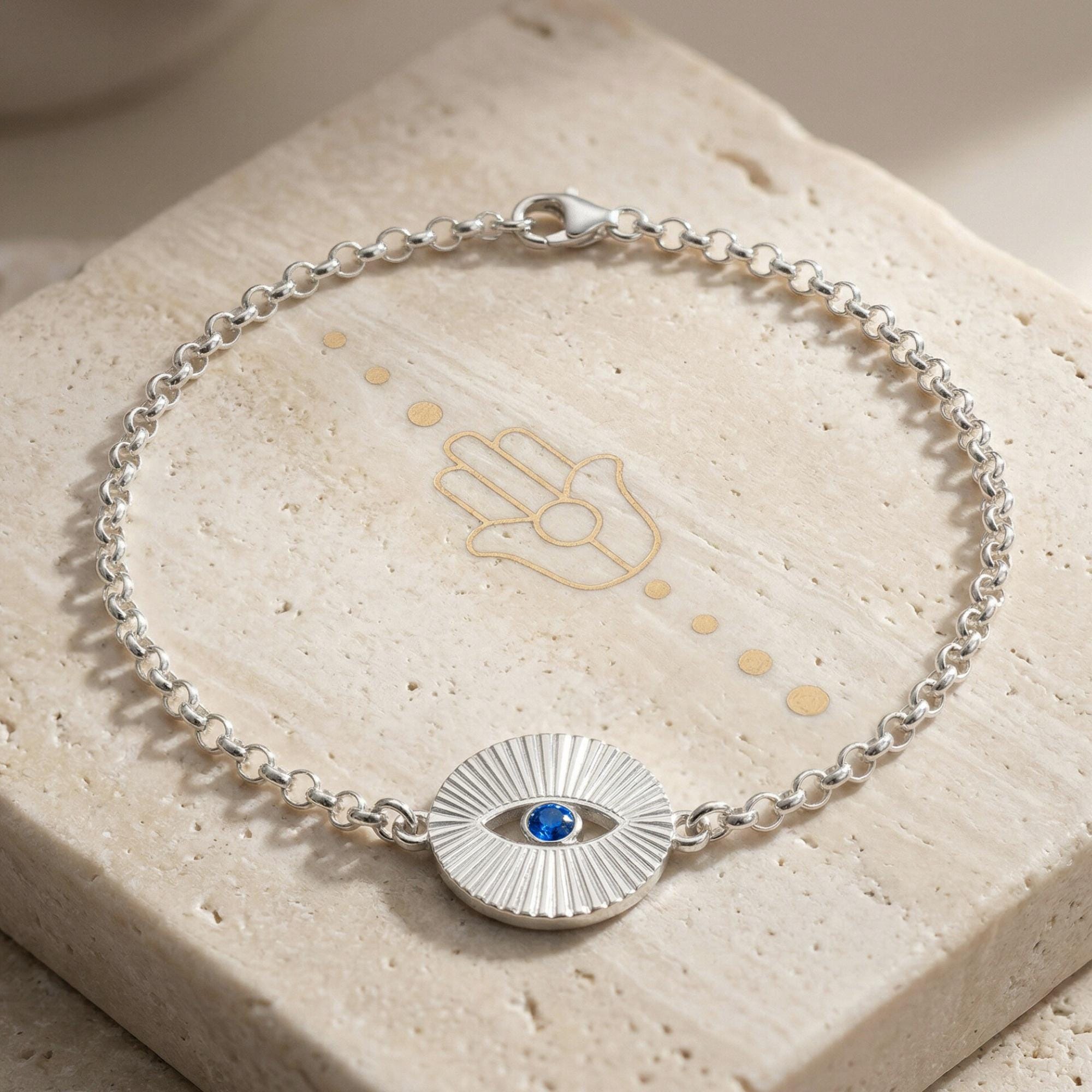 ♥ This Evil Eye Bracelet for women is intricately handmade in 925 sterling silver, 24K gold, or rose gold plated.