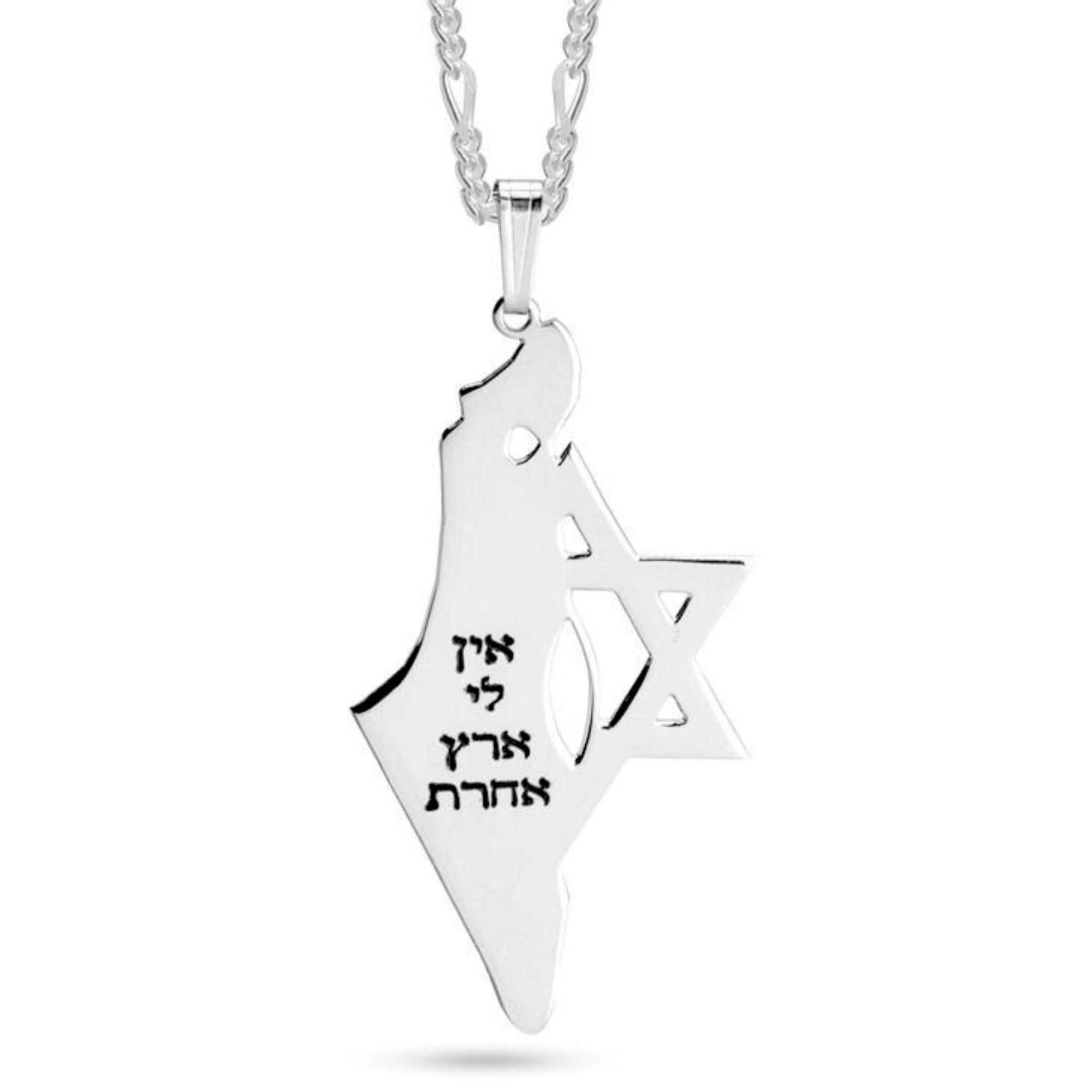 ✡️ Add a meaningful touch to your Jewish jewelry collection with this unique Israel map necklace featuring a Jewish Star of David in cutout style. Handcrafted in Jerusalem, Israel, this stunning necklace is made from 925 Sterling Silver and features the words "Am Yisrael Chai" engraved in Hebrew letters and a secret message option.
