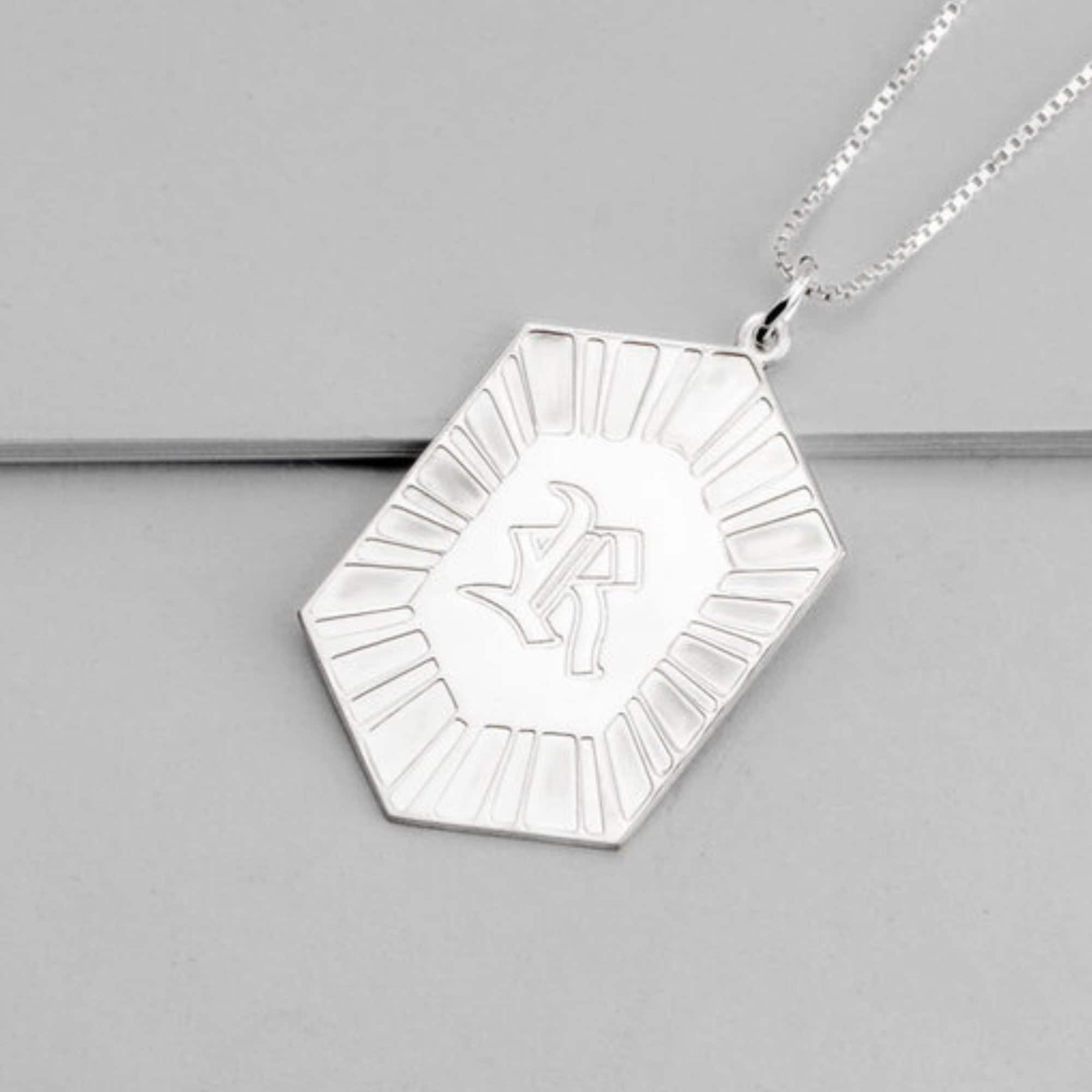 Crafted from solid 925 Sterling Silver or 24K Gold Plated, this striking pendant features your chosen initial in a beautifully detailed Old English Gothic font.