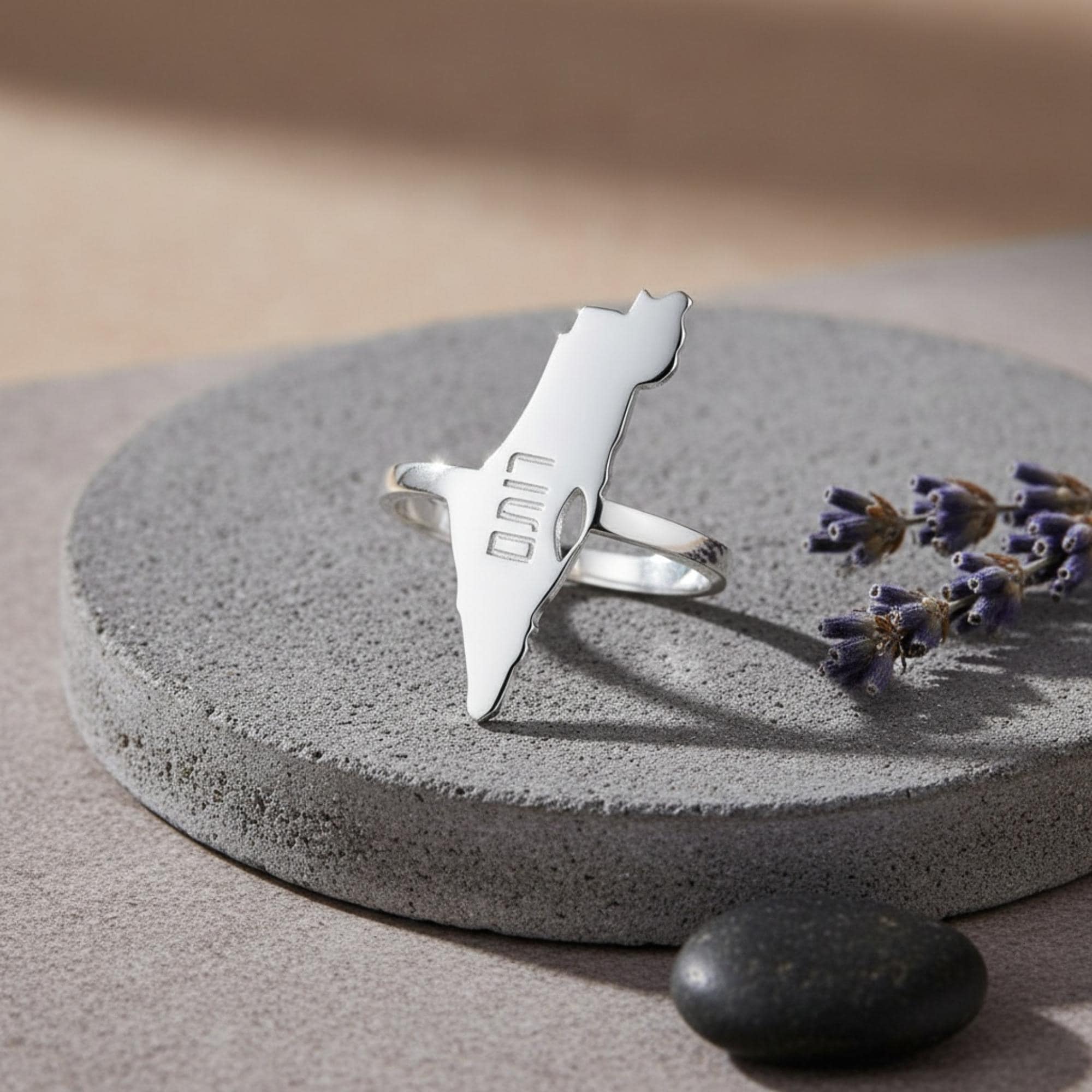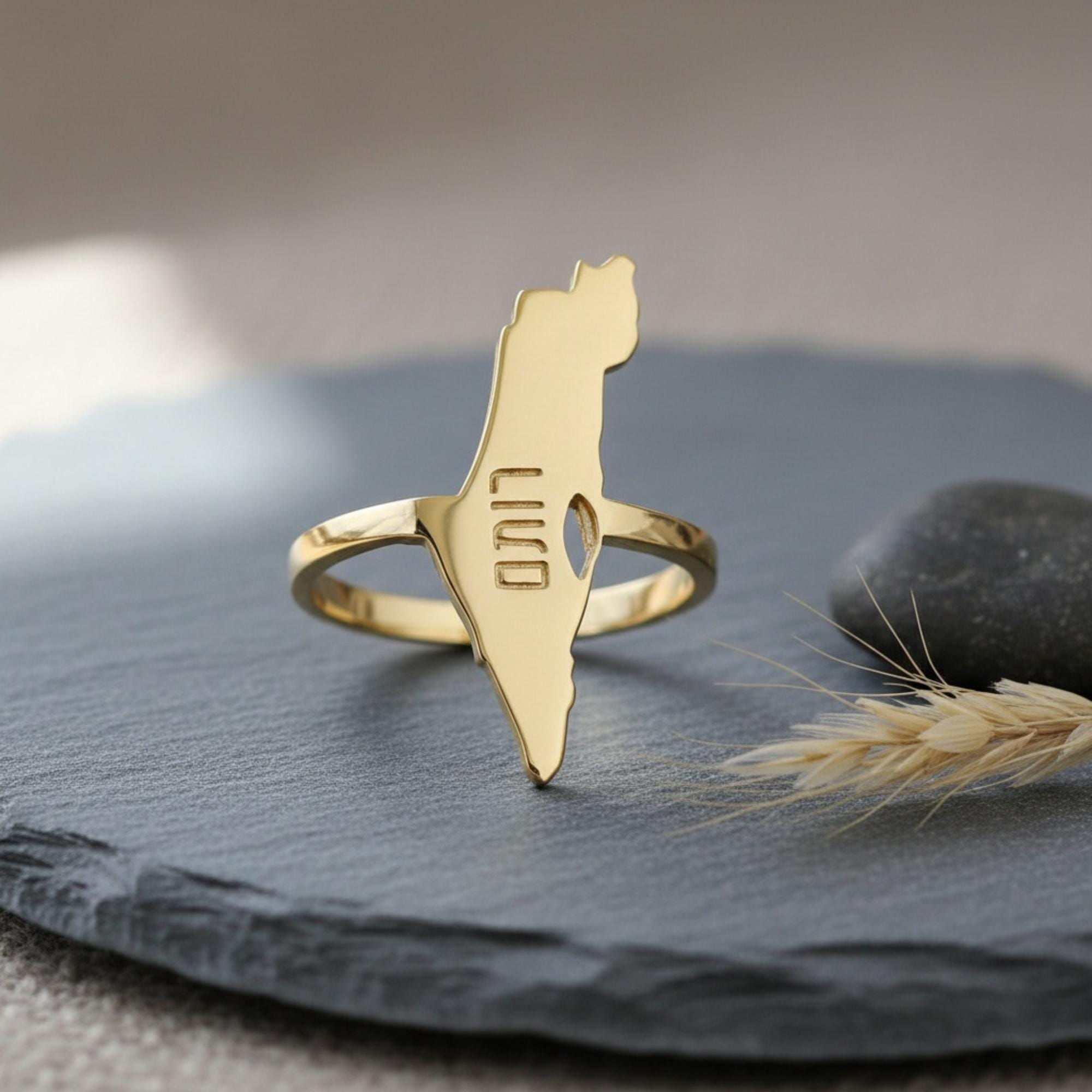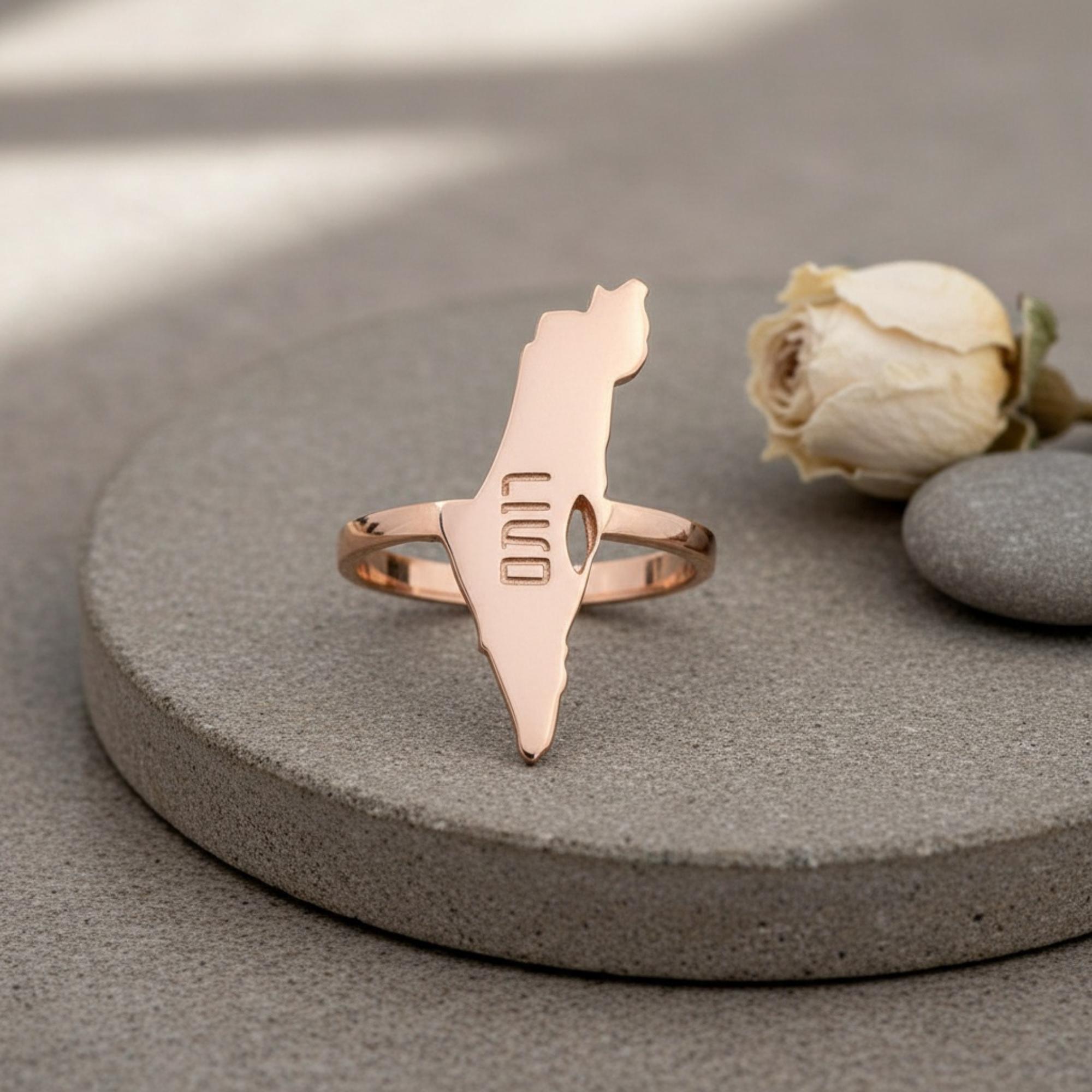 Each ring features a delicate map of Israel and can be personalized with your Hebrew name, a Star of David, or a meaningful engraving of your choice.