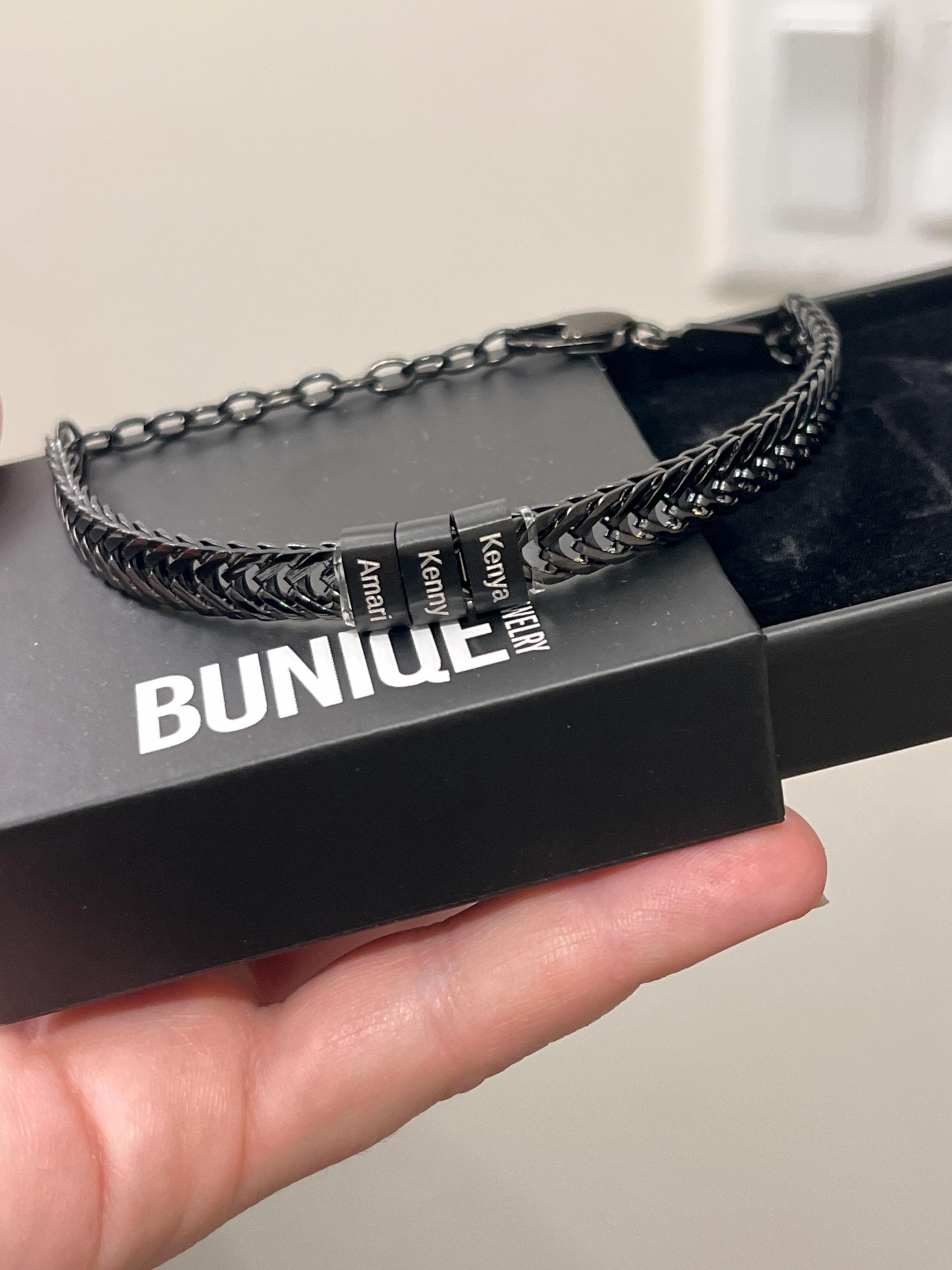 This timeless Black bracelet features sleek, engraved stainless steel beads, making the perfect Father’s Day, Christmas, or birthday gift for Dad or Grandpa.