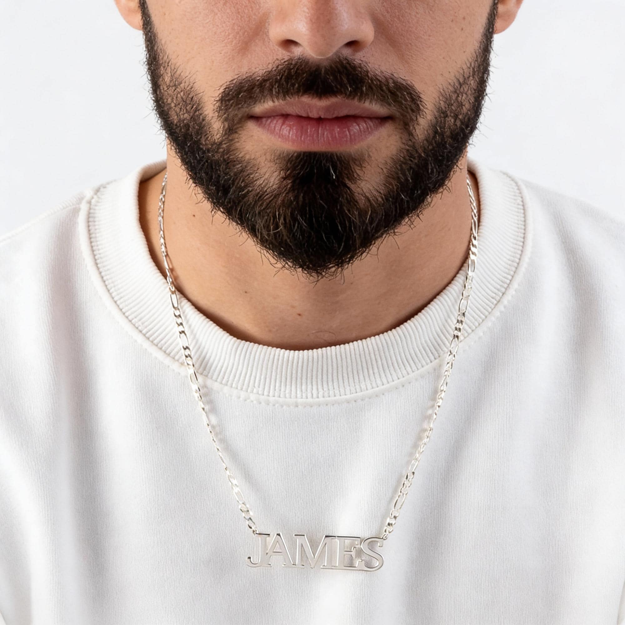 Handcrafted from 925 sterling silver and featuring a sturdy 3mm Figaro chain, this personalized nameplate necklace is perfect for men who love to showcase their unique style.
