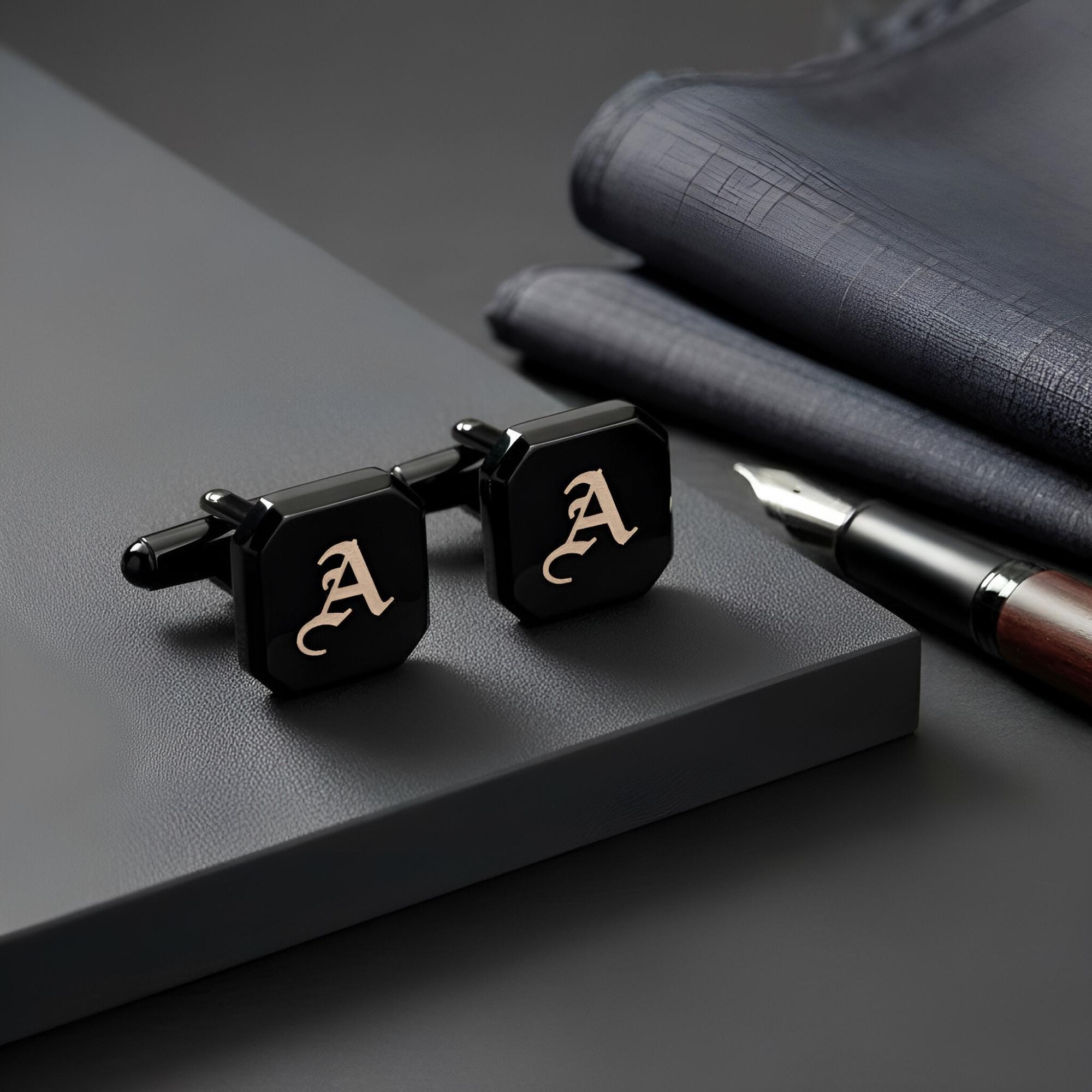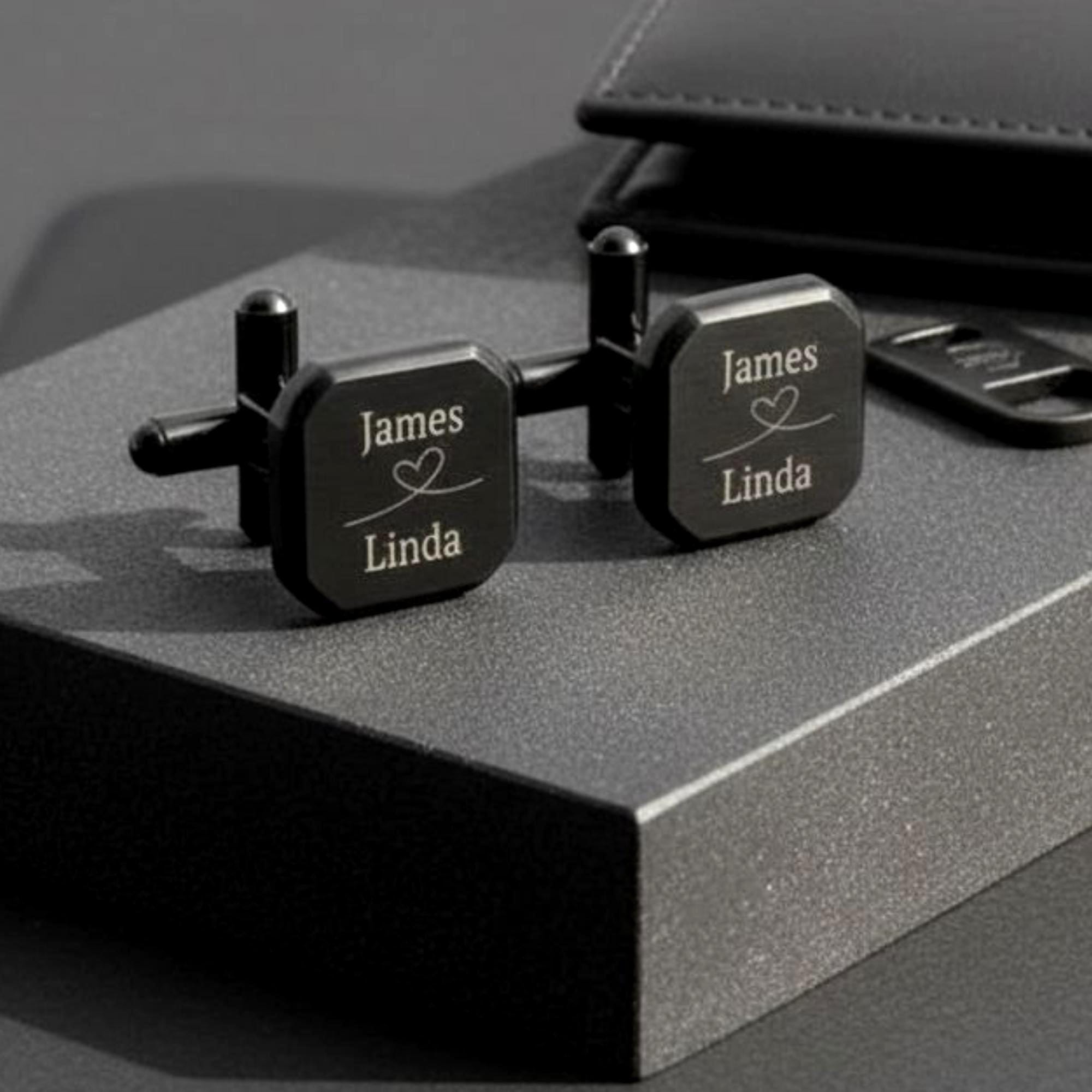 These personalized black cufflinks are crafted from premium black stainless steel and engraved with the name, initials or date you choose. A timeless men’s accessory that turns a simple detail into something unforgettable.