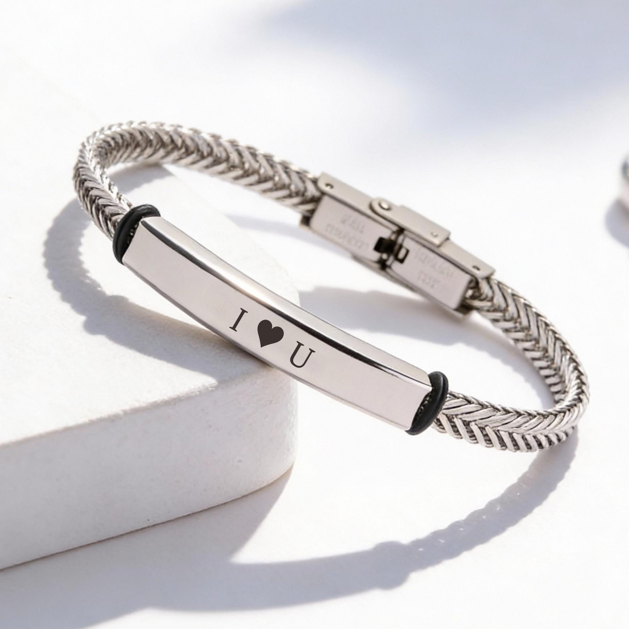 Give a gift he’ll treasure forever with this Men's Custom Engraved Cuff Bracelet, designed for durability and style.
