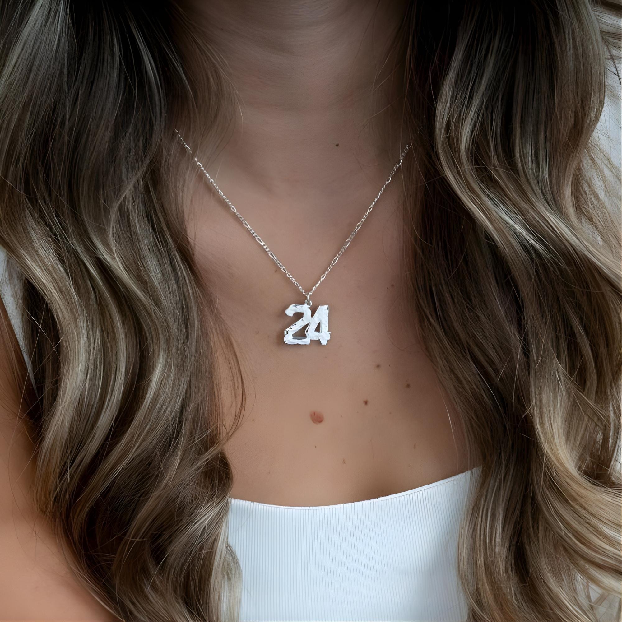 This necklace is stylish and meaningful, whether as a gift for an athlete or a personalized piece symbolizing a significant year or number.