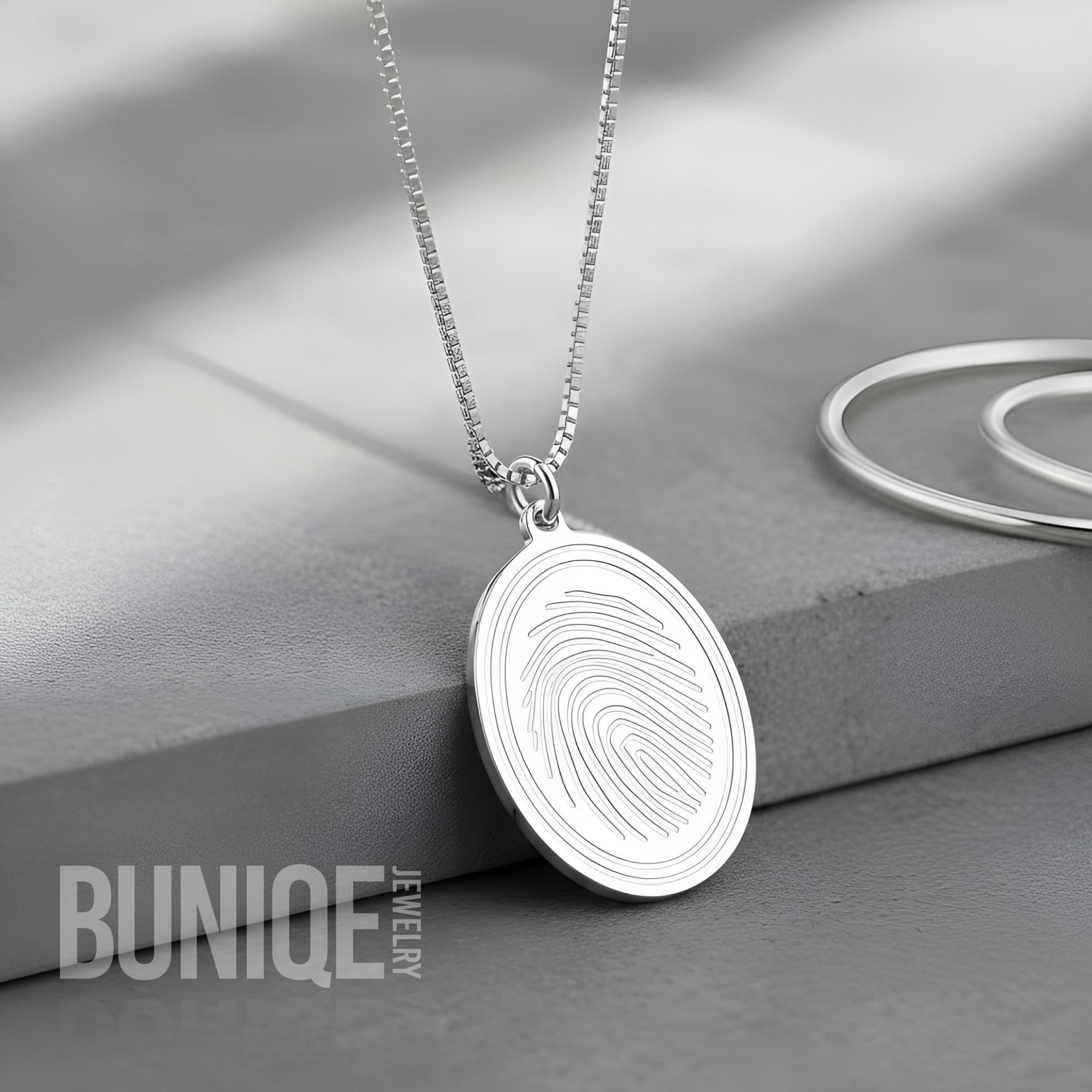 A heartfelt way to remember a loved one or capture a meaningful memory. This high-quality fingerprint necklace is crafted with care and lasting durability, making it a timeless piece of jewelry to wear close to your heart.