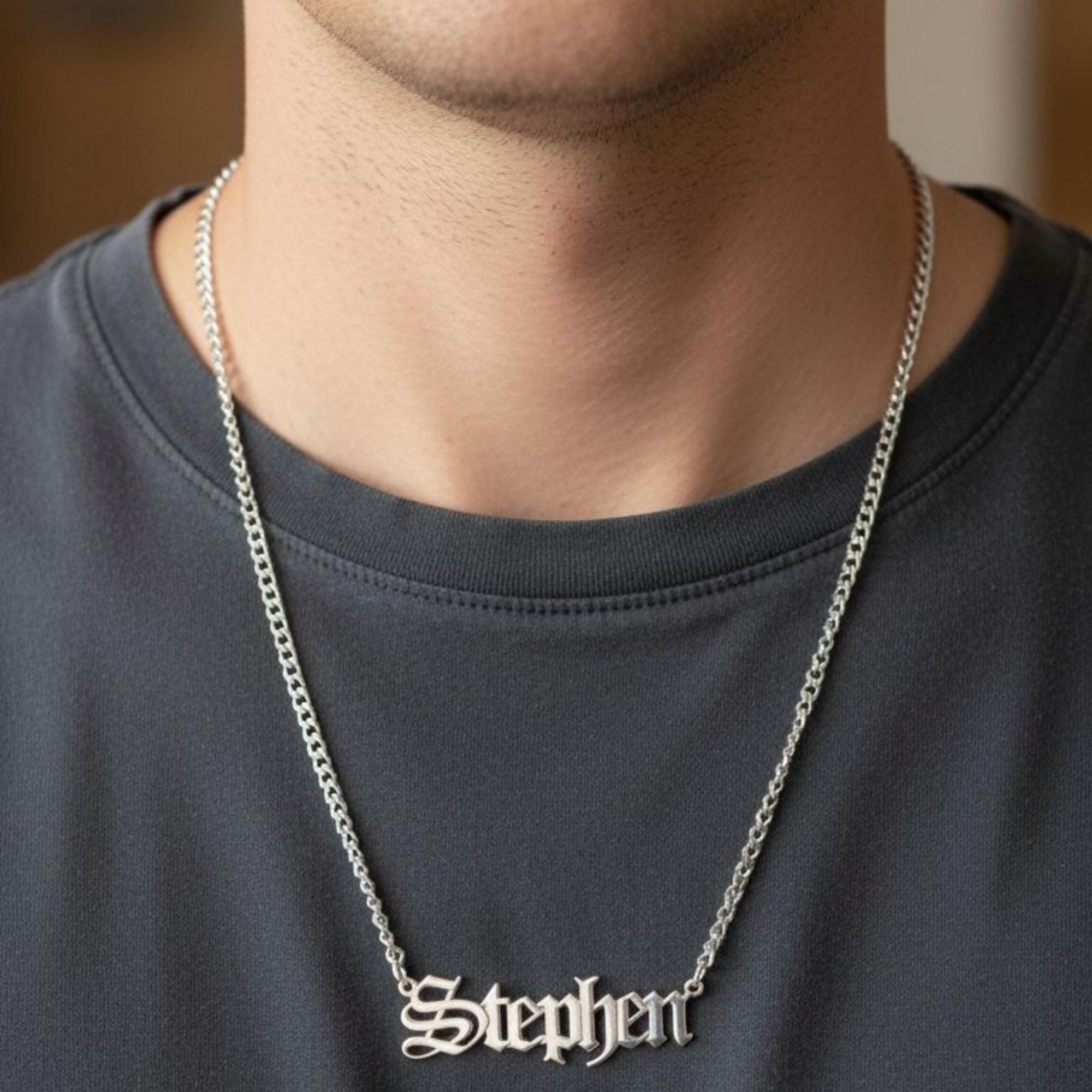 Crafted for durability and style, this bold name necklace is the perfect accessory for men who appreciate an intense, modern look. Its high-quality materials ensure lasting wear, while the personalized name design adds a unique, sentimental value.