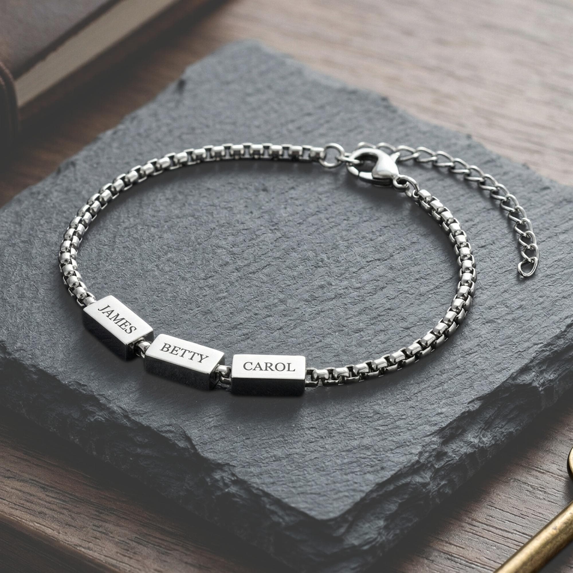 Each bead can be engraved with kids’ names, initials, or meaningful dates, creating a one-of-a-kind keepsake he’ll wear with pride.