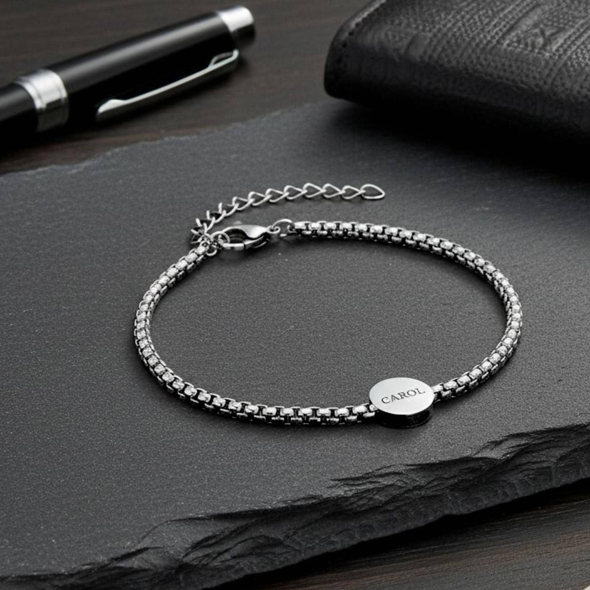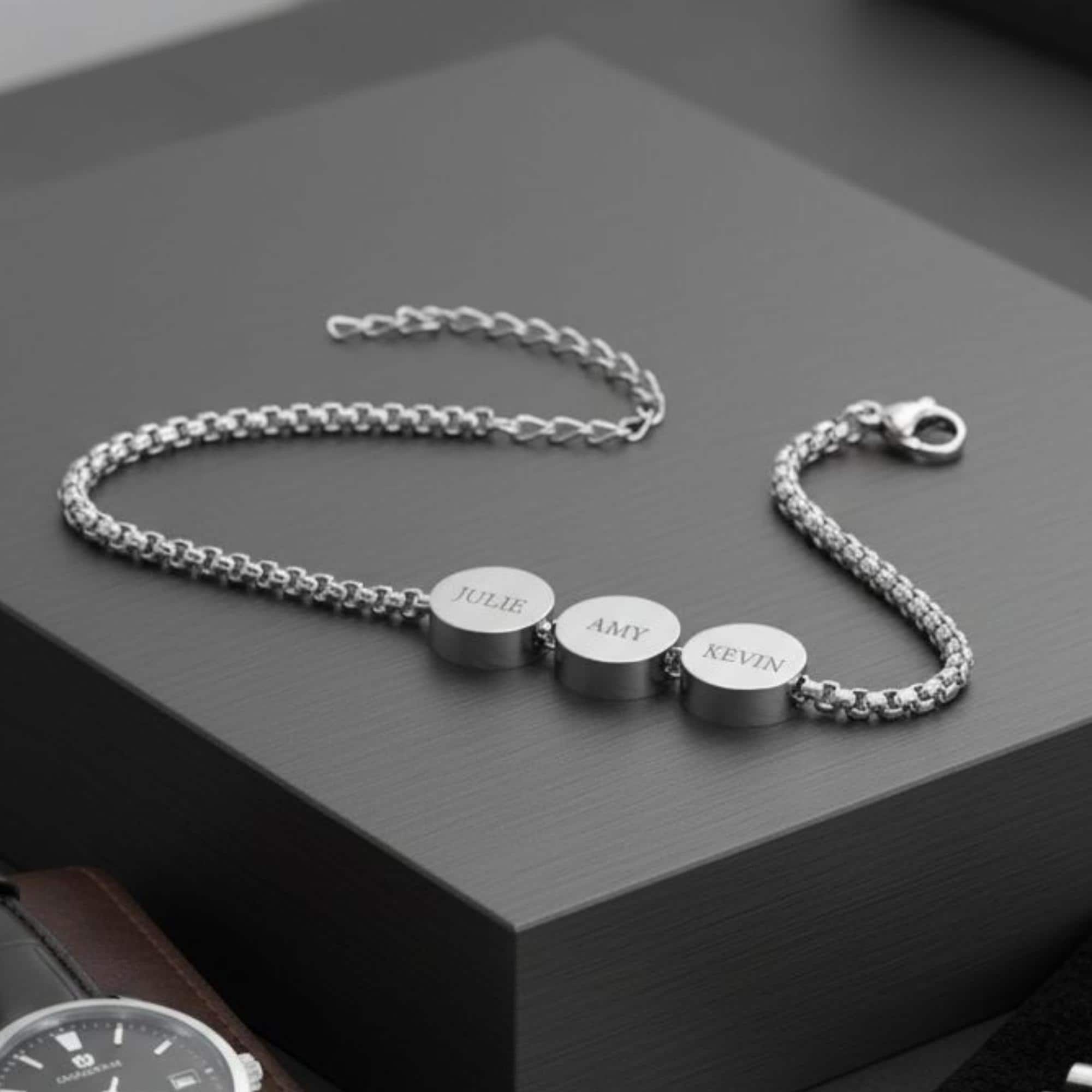 Celebrate the love and connection between a father and his children with this custom Dad Bracelet. Featuring engraved circle beads with kids' names or meaningful dates, this premium stainless steel bracelet is a stylish and heartfelt gift.