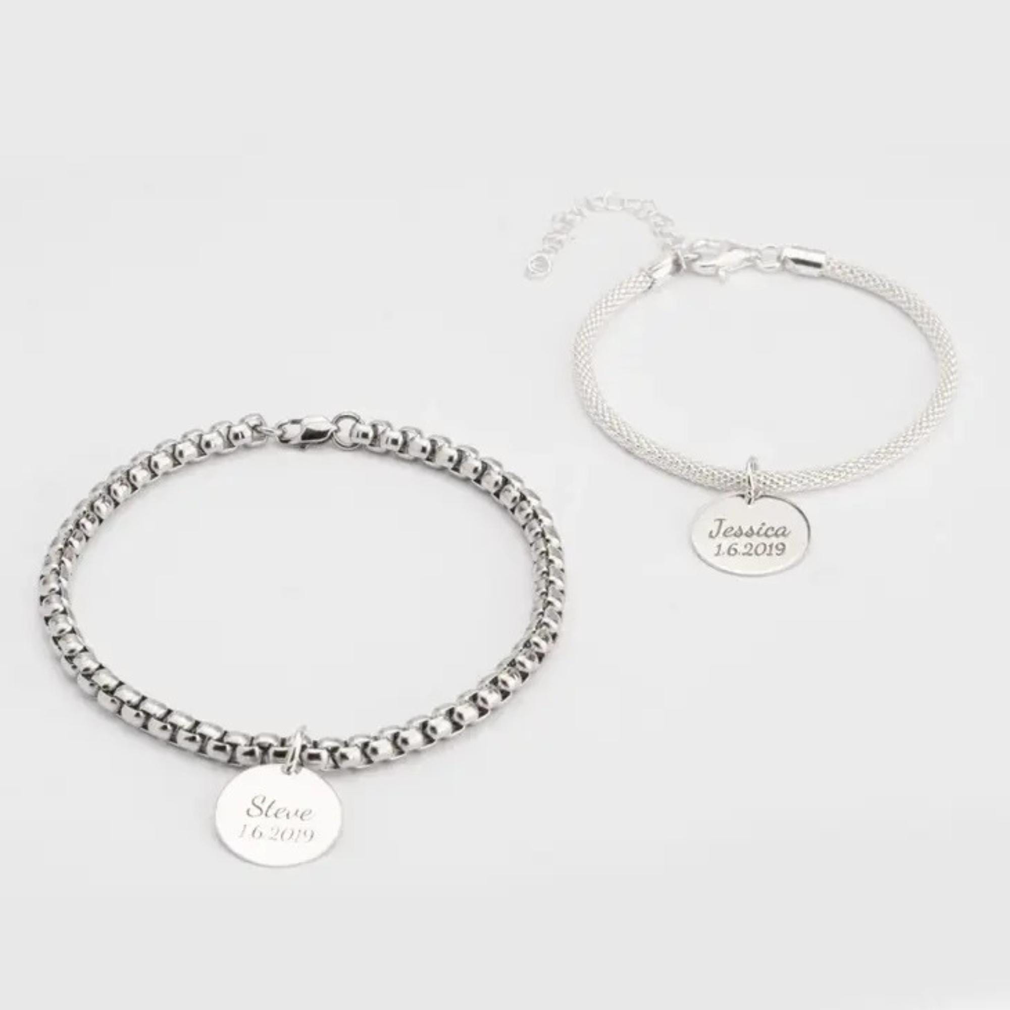 💑 Celebrate your bond with this elegant Matching Couple Bracelet Set designed for him and her. Featuring personalized engraving options, these bracelets are the perfect way to express love, friendship, or connection. They are Valentine's Day gifts, anniversary presents, or tokens of appreciation for your best friend or significant other.
