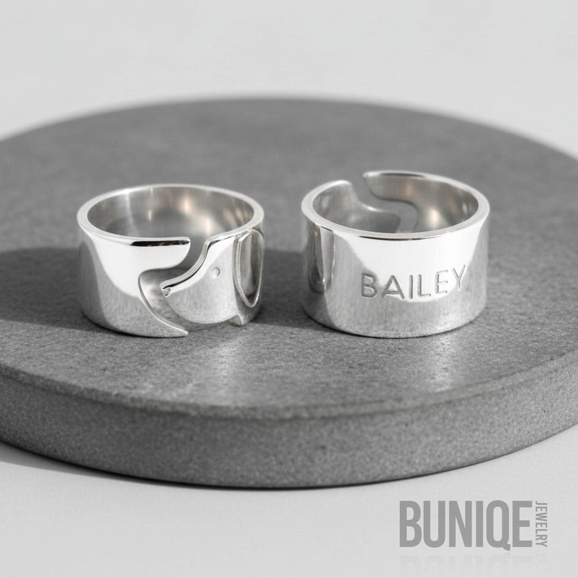 This personalized ring features a delicate dog face engraving on one side and your pet’s name on the opposite side.