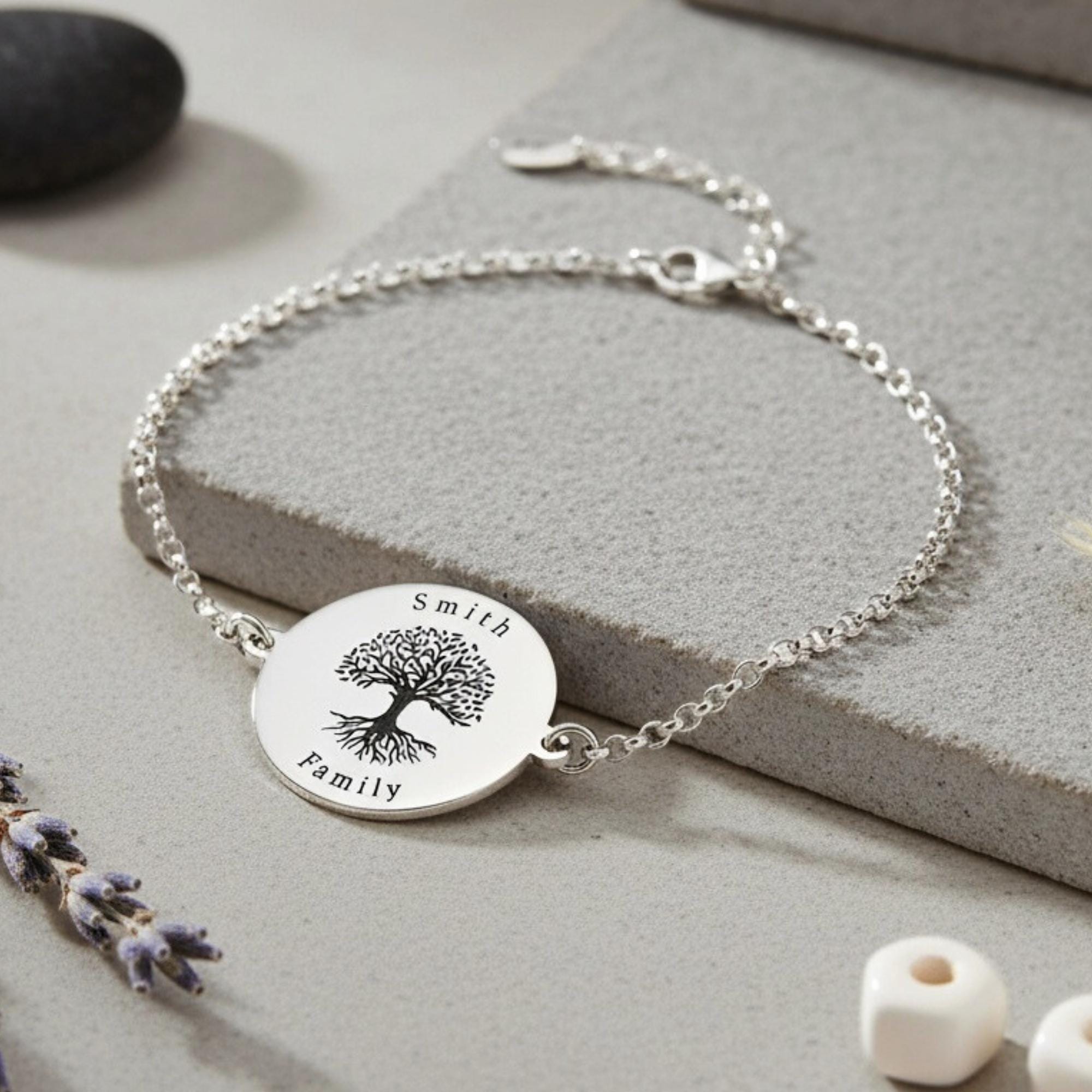 This bracelet features a beautifully detailed Tree of Life pendant and can be personalized with the name of your loved One. It makes a meaningful and heartfelt gift for moms, grandmas, or anyone who cherishes Family.