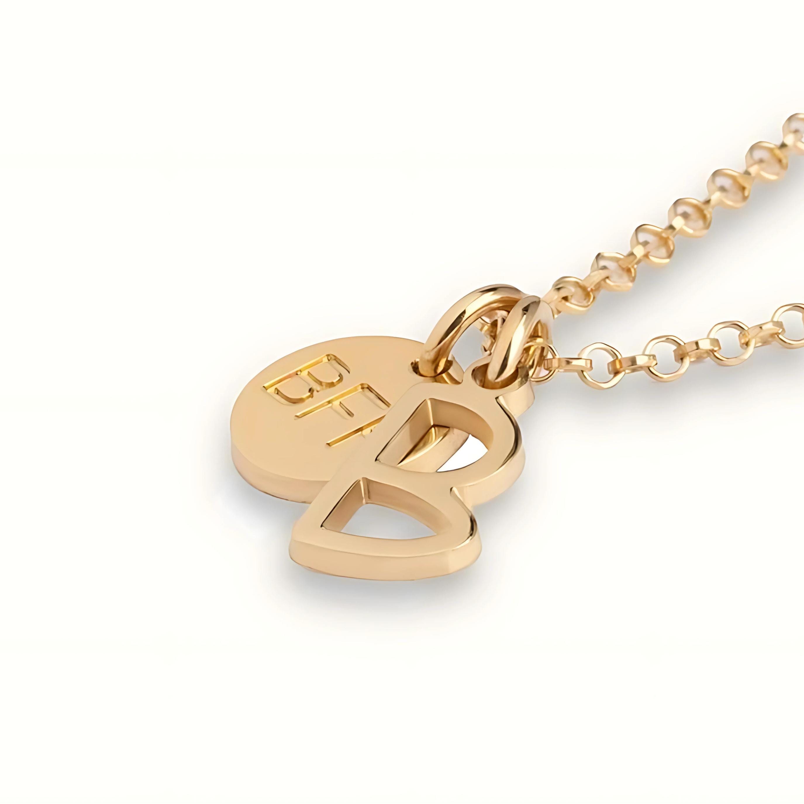 💎 Celebrate your friendship with this Custom BFF Necklace, a meaningful piece featuring two personalized charms: one with a custom initial and another circle disc engraved with the letters "BFF." This best friend necklace symbolizes connection and love and is the perfect custom gift that symbolizes the friendship between sisters or soulmates.